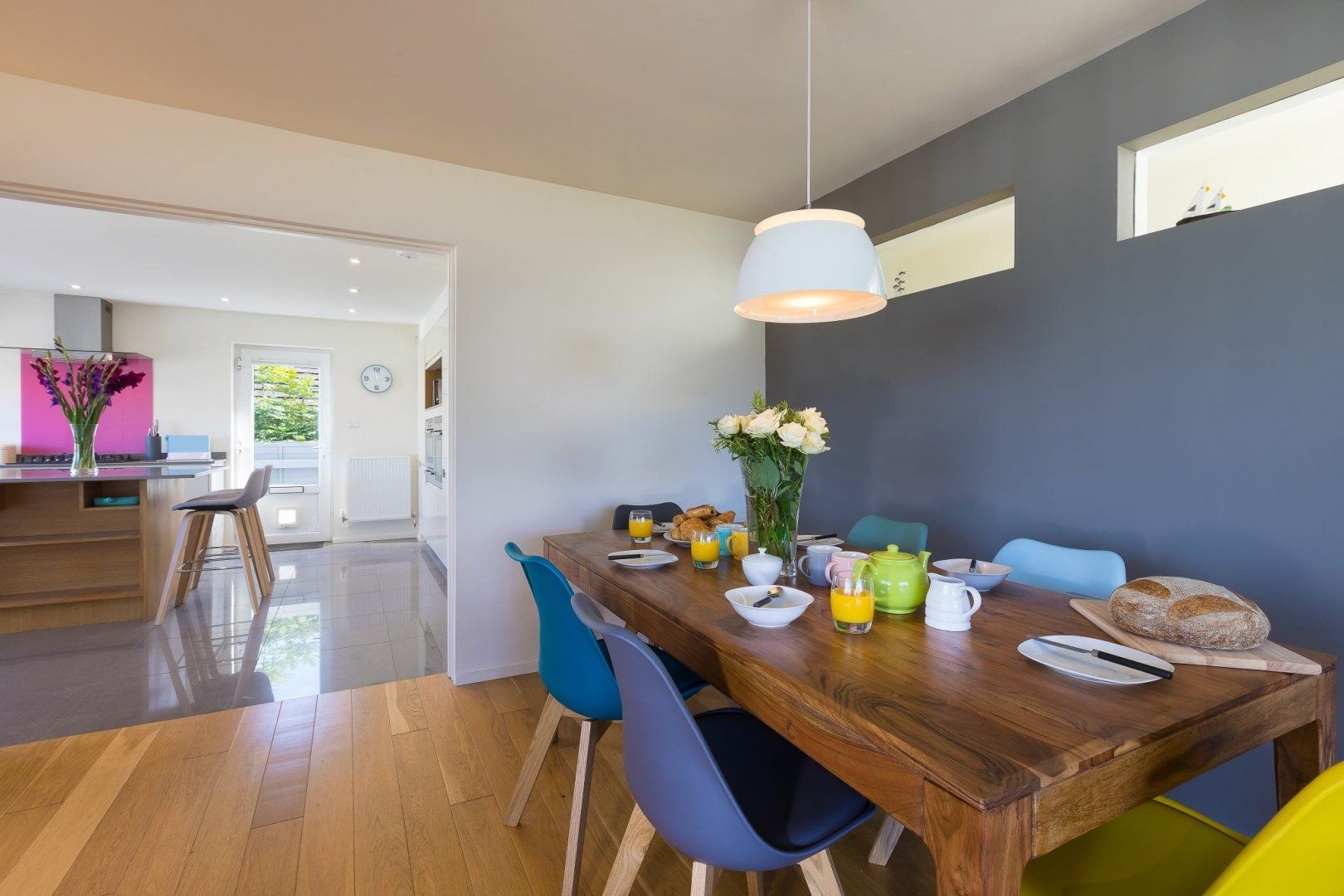 Accomodation Details Set over three floors. Three bedrooms: 1 x king, with en-suite shower, basin and WC, 1 x super-king,(zip/ link , can be twin on request), 1 x twin. Family bathroom with bath and enclosed shower, wash basin, heated towel rail, and WC. Cloakroom with basin and WC. Open-plan living space with kitchen, dining area and sitting area with balcony
