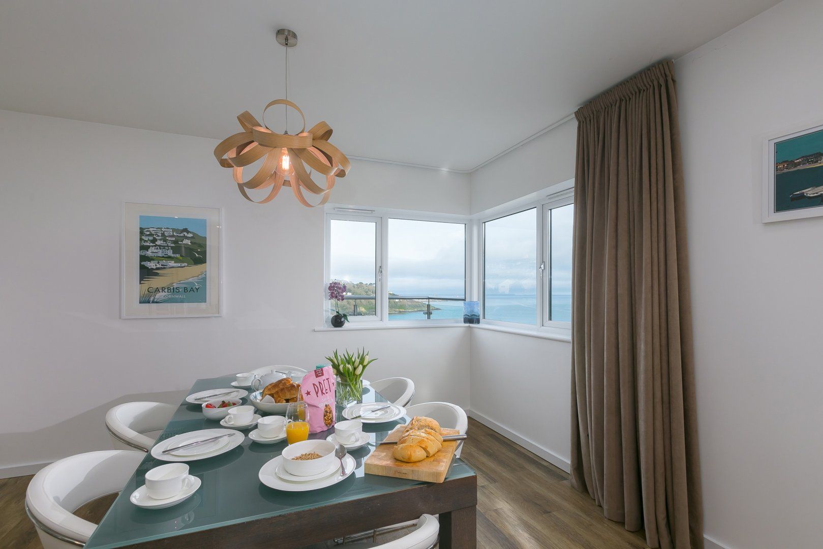 Amenities Gas central heating. Siemens cooker, hob, microwave, American fridge/freezer with ice and water dispenser, 'Bean to Cup' coffee machine, washer/dryer, dishwasher, Smart TV with full Sky Q package, including Sky Sports HD, Sky Cinema, Kids and Netflix, to lounge, master and second bedroom, TV with Freeview DVD player to bedroom three,Sonos Surround sound with Airplay and Spotify Play to living area., PS3 with selection of games, Wifi. Fuel and power inc. in rent. Bed linen and towels inc. in rent. 2 x cot and highchair provided; we request that guests provide their own cot bedding. Off-road parking for one car. 7kw untethered EV Charger available at the property, this is paid for via the FUUSE app which you can download prior to arrival or scanning a QR code located by the charger. Seaward facing first floor balcony, seaward facing terrace with 4 seat hot tub, outside furniture including table and chairs. Sorry no pets, no smoking. Shops, beaches, and pubs within a short walk