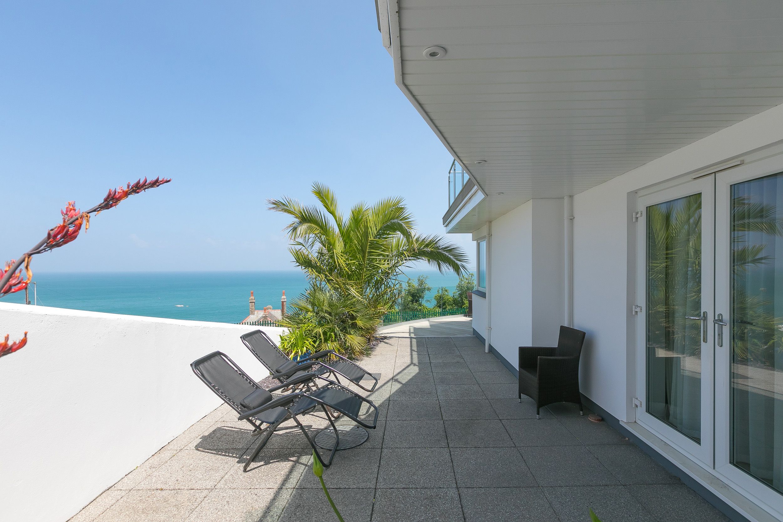 Accomodation Details Reverse level, semi-detached. Three basement bedrooms: 1 x king with en-suite shower, basin and WC, 1 x twin (zip/link, can be super-king on request), 1 x single. Family bathroom with spa bath with shower-over, wash basin, heated towel rail, and WC. Open-plan living space with kitchen, dining area and sitting area, seaward facing first floor balcony, seaward facing terrace