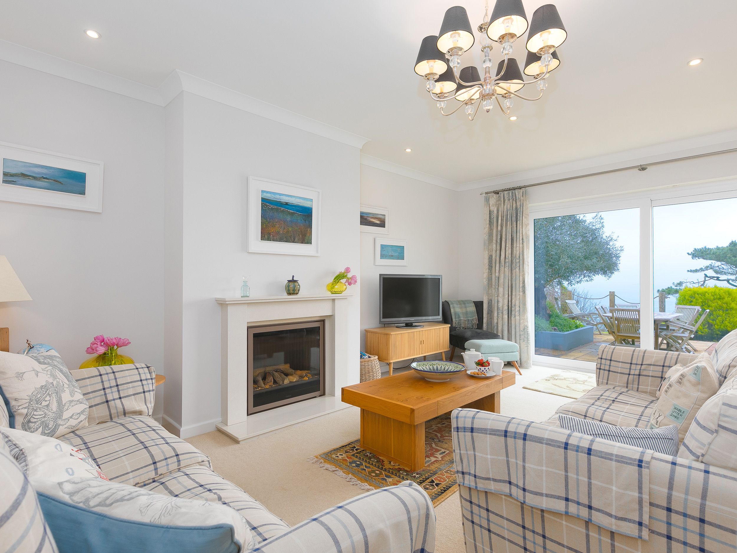 Amenities Gas central heating, log burner (logs not provided) to lounge 1. Rangemaster gas range cooker/grill, 2 x oven, warming oven, five ring gas hob with wok burner, , a hotplate/griddle, microwave, , American style fridge/freezer, coffee machine, washing machine, dishwasher, HD TV with SKY HD to upstairs lounge one, LCD TVs to lounge 2 and 3, Blu Ray DVD player to lounge 1 and 3, DVD player to lounge 2, all with selection of discs, Sonos Playbar to upstairs Living area 1, for playing music from your own device, children’s books, Wifi. gas and electric inc. in rent. Bed linen and towels inc. in rent. 2 x cot and highchair and two stair gates provided; we request that guests provide their own cot bedding. Please note, the stairgates cannot be used at the bottom of the living room stairs due to one side of the stairway being constructed with a glass balustrade. Off-road parking for five cars, 2 x seaward facing balcony, seaward facing tiered garden with decking area, rear terrace, outside furniture including BBQ, 2 x sun loungers, table, and chairs. Pet friendly, no smoking. Shop 0.5 miles, pub 0.3 miles, beach 1.3 miles. Building works - A discount has been applied to the prices of this property till September due to building works next door, over which we have no control, The number of builders on site vary, as do the noise levels, This discount is offered by way of compensation for any noise or disturbance that guest may experience during their stay, Please note that no further compensation will be offered under any circumstances, Please feel free to contact us if you have any questions on this. Children should be supervised on the steep steps and terraces.