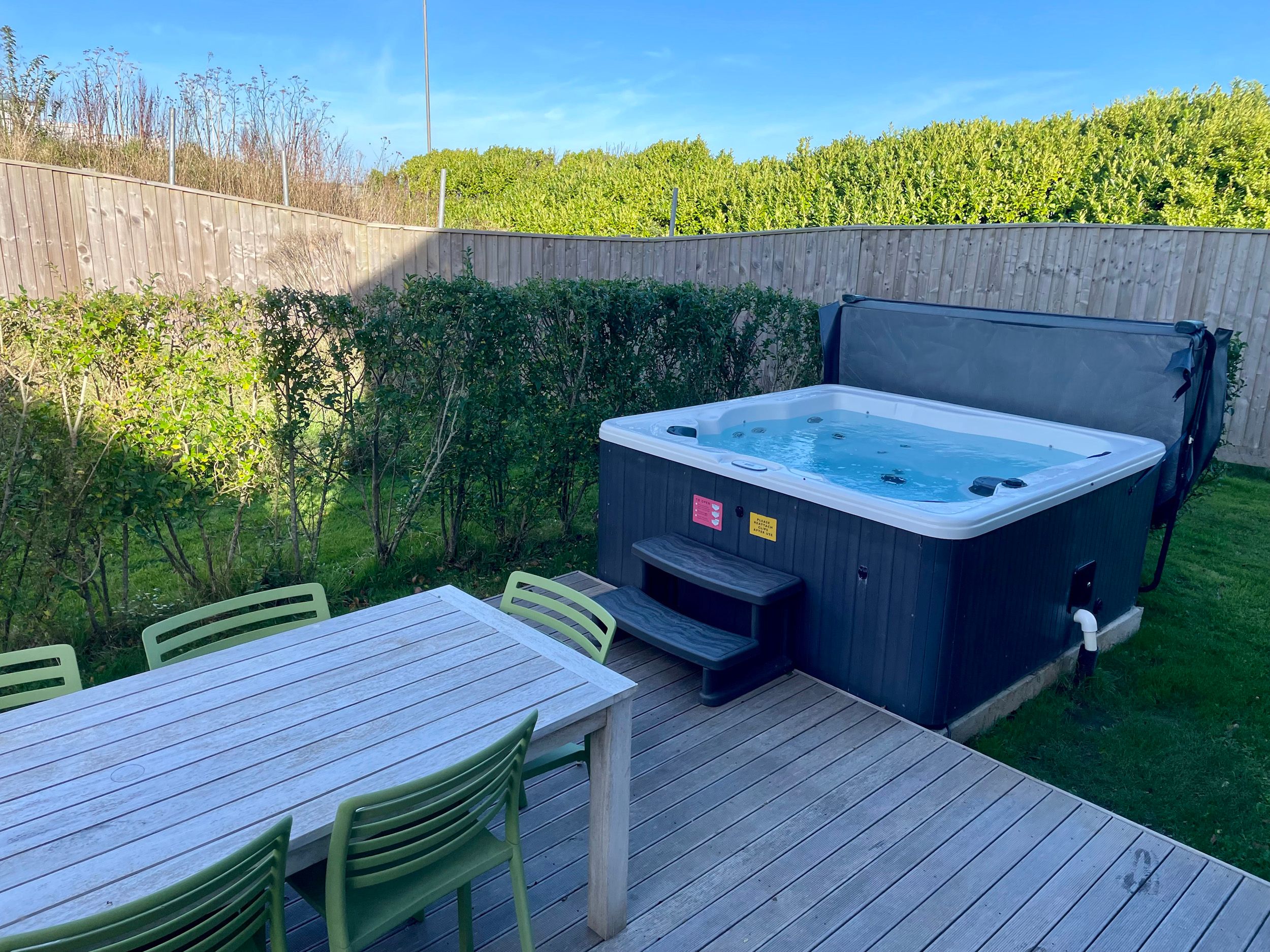 Amenities Electric central heating, oven, hob, microwave, fridge/freezer, washer/dryer, kettle, toaster. Smart TV, TV, WiFi. Fuel and power inc. in rent. Bed linen and towels inc. in rent. Off-road parking for 2 cars. Private enclosed rear garden with lawn, decking, furniture, and hot tub (please see hot tub supplement note). Two well-behaved dogs welcome. Sorry, no smoking. Shop 0.7 miles, on-site pub/restaurant 0.1 miles, beach 1 mile. Note: Check-in from 4pm, check-out by 10am. Note: Guests will have complimentary access to both the indoor and outdoor swimming pools, sauna, steam room and gym (the resort spa is available to guests where treatments are chargeable). **Note: Hot Tub Supplement - Should you wish to use the hot tub during your stay, please select this box when you move to the booking page.Please note, should you wish to use this hot tub, this will incur an additional charge of £75.00.Should you not select this box when booking, the hot tub will no be available for use during your stay**