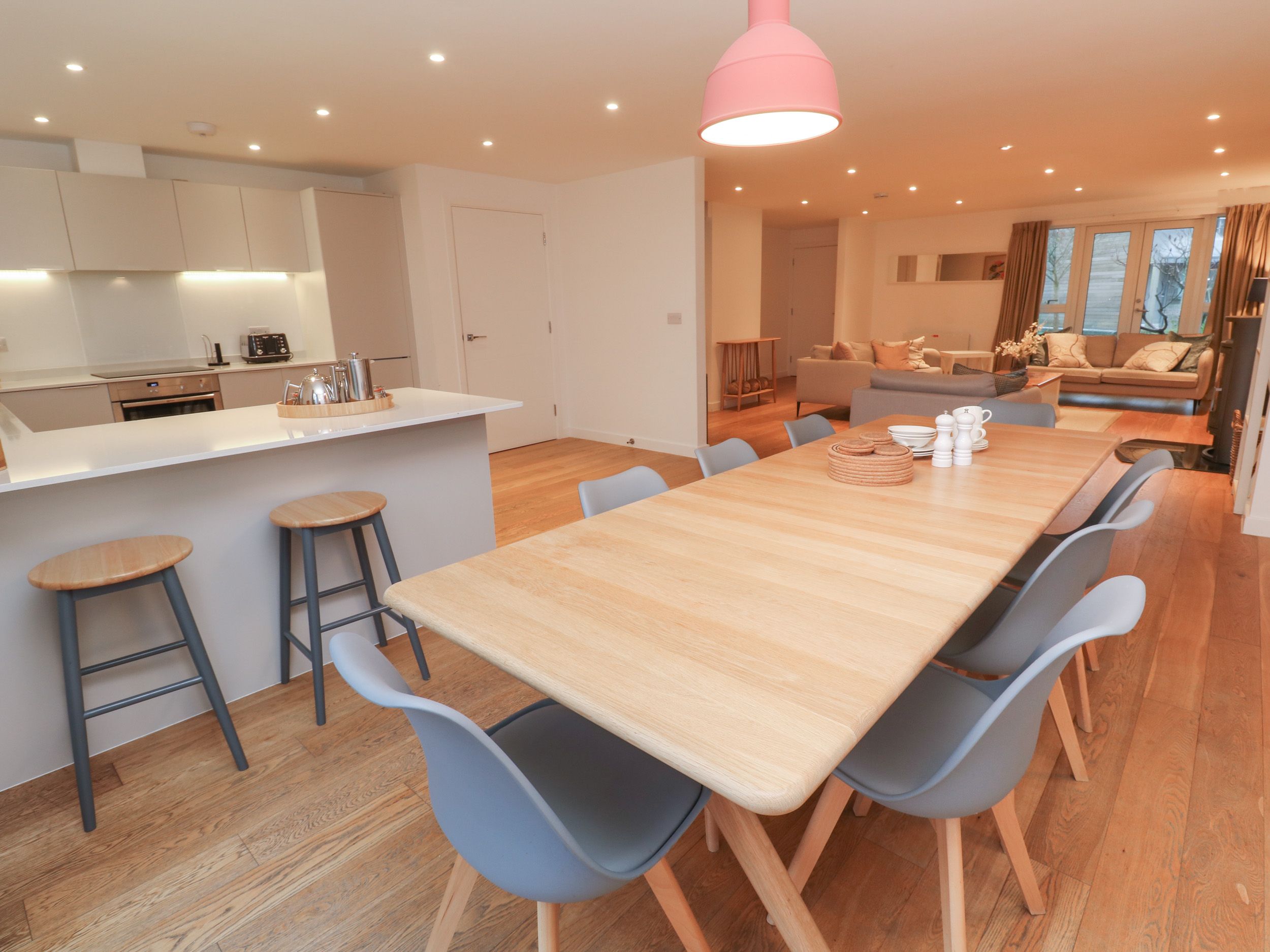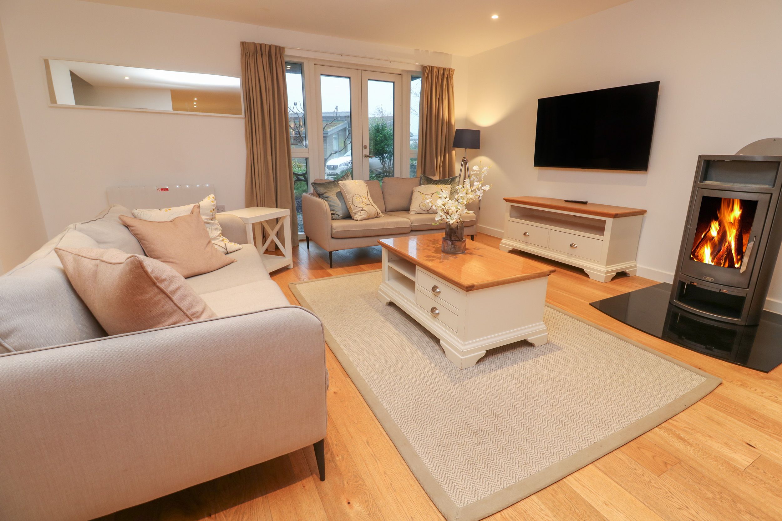 Holiday home Una, Lodge 73, a detached house, consists of an open-plan living space with a Smart TV, woodburning stove, dining seating for eight, breakfast bar seating two, and a kitchen with an oven, hob, microwave, fridge/freezer, washer/dryer, kettle and toaster. The bedrooms consist of two super-king-size (zip/link, can be twin upon request), one king-size, and one super-king-size (zip/link, can be twin upon request) with a TV, balcony with furniture, and an en-suite shower room with a walk-in shower, basin, and WC. There is also a family bathroom with a bath, walk-in shower, basin, and WC, as well as a ground-floor cloakroom. Outside, there is a private enclosed rear garden with lawn, decking, furniture, hot tub, and off-road parking for two cars. Two well-behaved dogs are welcome. Sorry, no smoking. Guests can find a shop in 0.7miles, an on-site bar/restaurant in 0.1 miles, and within 1 mile, a beach. Enjoy your Cornish coastal getaway to Una, Lodge 73. Note: Check-in from 4pm, check-out by 10am.