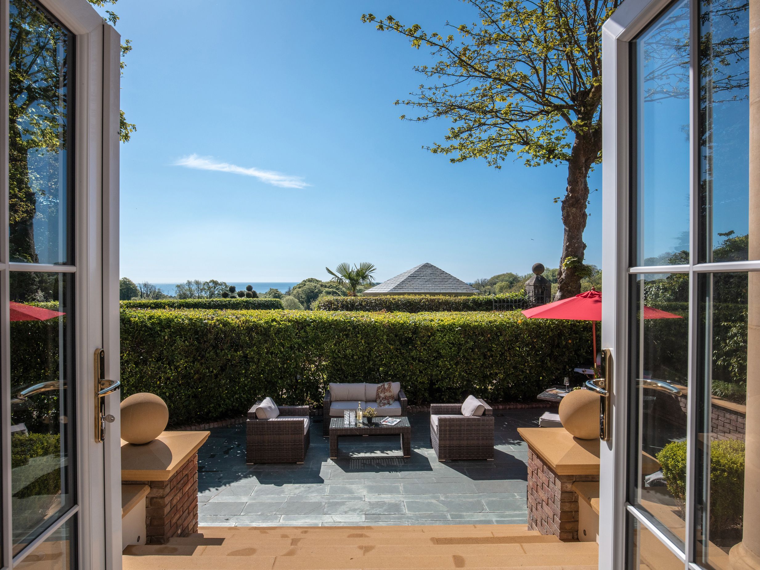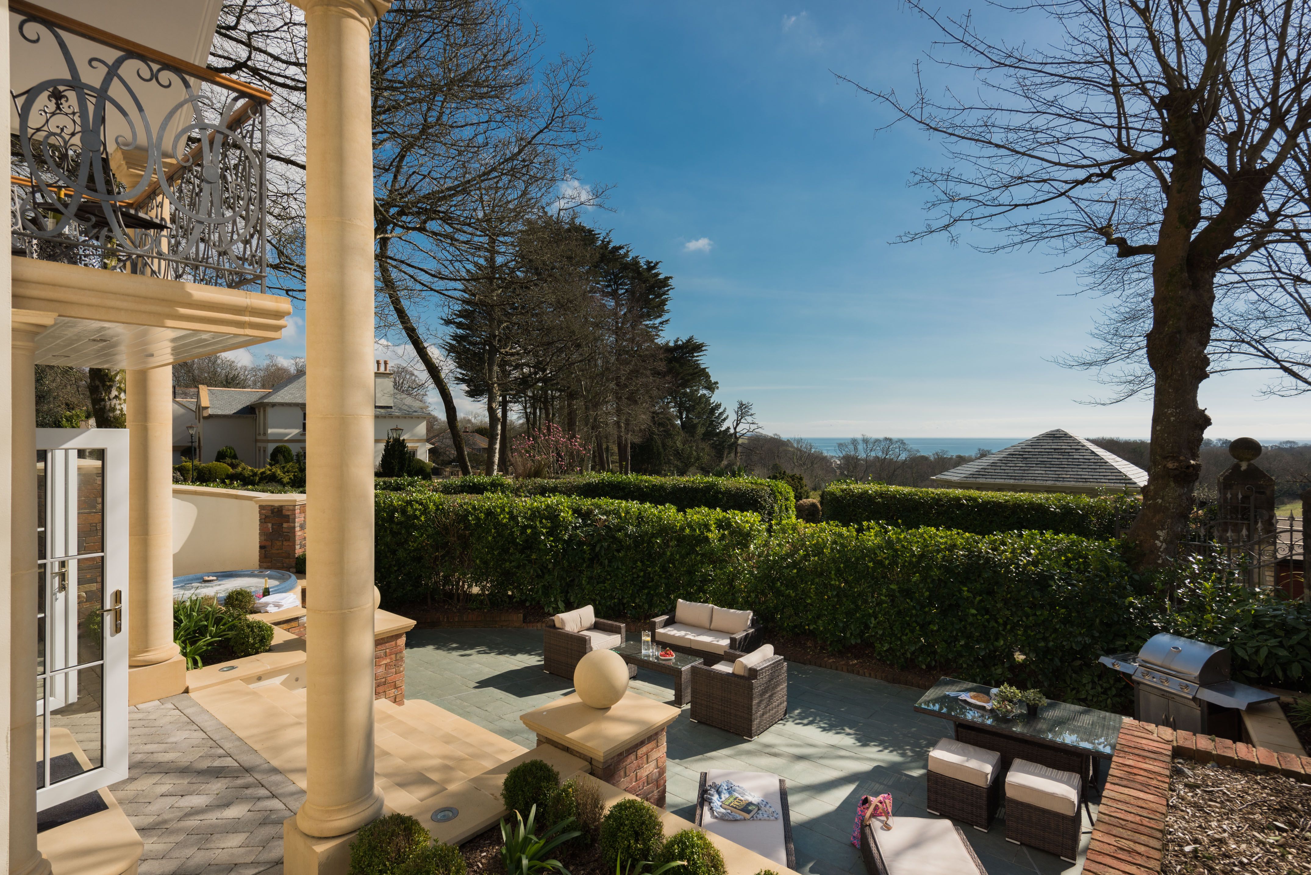Amenities Gas central heating with underfloor heating throughout. Electric oven, induction hob, microwave, fridge/freezer, washing machine, dishwasher, coffee maker. 55" Smart TV with cinema surround sound, Netflix and Freeview, Bose Bluetooth speaker, WiFi, iron, ironing board. Fuel and power inc. in rent. Bed linen and towels inc. in rent. Highchair, travel cot, and stairgate available. Off-road parking for 2 cars. EV charging available. Rear garden with patio, furniture, barbecue, and hot tub. Balcony with furniture. Sorry, no pets and no smoking. Shop 0.3 miles, pub 0.5 miles, beach 0.7 miles. Note: Guests have access to full use of gardens. Note: Check-in from 3:30pm, check-out by 10am. Note: Steps down to patio garden. Note: Room monitor and toddler step for toilet available for children. Note: Owner provides a complimentary guest welcome pack.