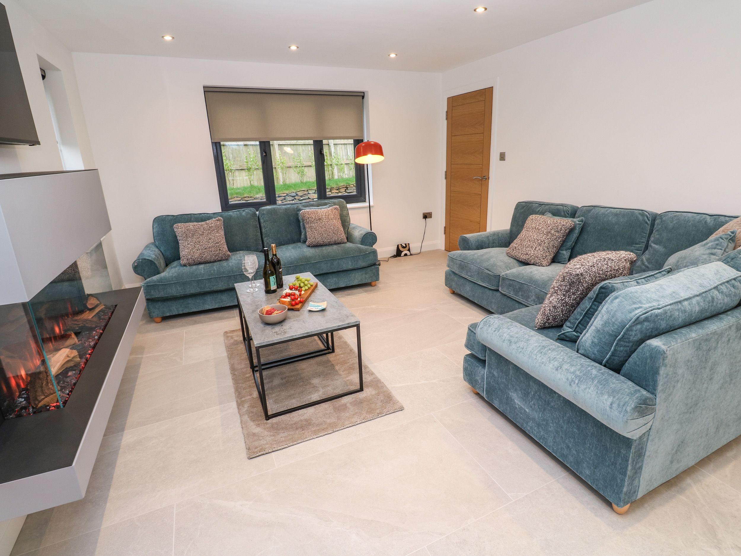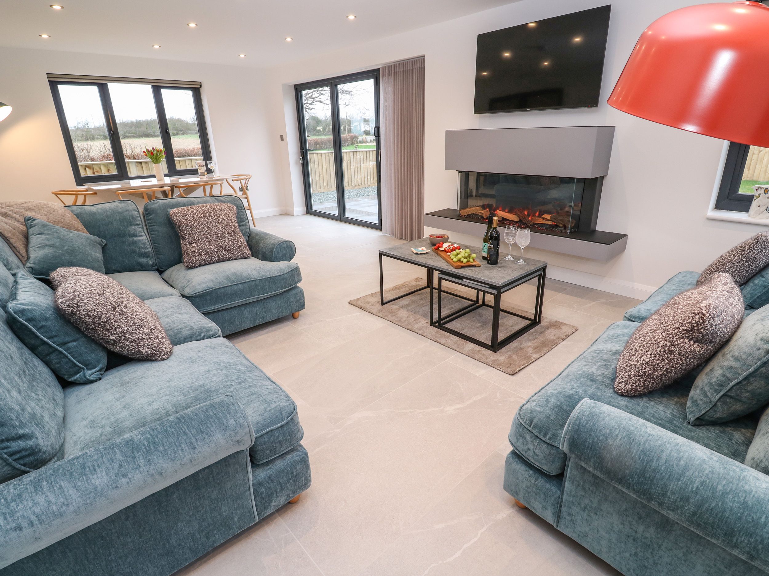 Four bedrooms: 1 x super king-size with Juliet balcony and en-suite walk-in shower, basin and WC, 1 x super king-size with en-suite walk-in shower, basin, WC and Smart TV, 1 x super king-size zip-link (can be double or twin on request) and Smart TV, 1 x super king-size zip-link (can be double or twin on request). Spacious, open plan kitchen/diner. Lounge with mood electric fire suite and Smart TV, with 3m bi-fold doors at one end opening out onto the patio, lawned garden and hot tub. Separate snug with Smart TV. Bathroom with bath, shower over, basin, heated towel rail and WC. Ground-floor shower room with walk-in shower, basin and WC. Utility room