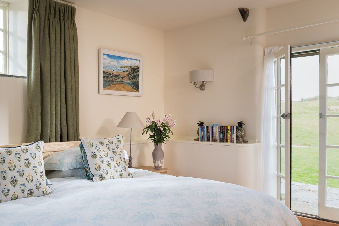 Part of an old farmhouse that's been braving the Cornish weather for over seven hundred years. Sitting outside in the morning sun of the east-facing courtyard makes you appreciate the old rugged stone façade, especially compared to the sleek and cosy interior. You'll get a whole wing to yourself, complete with two dining spots outdoors and comfortable loungers in the garden. In the colder months, you'll be spending more time in the sitting room, surrounded by books and a large flat-screen TV with Technics cinema sound for an immersive experience. For a bit more peace and quiet, escape to the reading room which has even more books available, or relax in the pleasantly quiet bedroom. From here, the French doors open up to a cosy spot for two where you can admire the sunrise and plan your day. The nearest wild beach is well within walking distance, but the headline attraction is up the road in Bude. If you're up for some sightseeing, take the car down to Tintagel to see the ruins of King Arthur's mythical castle.