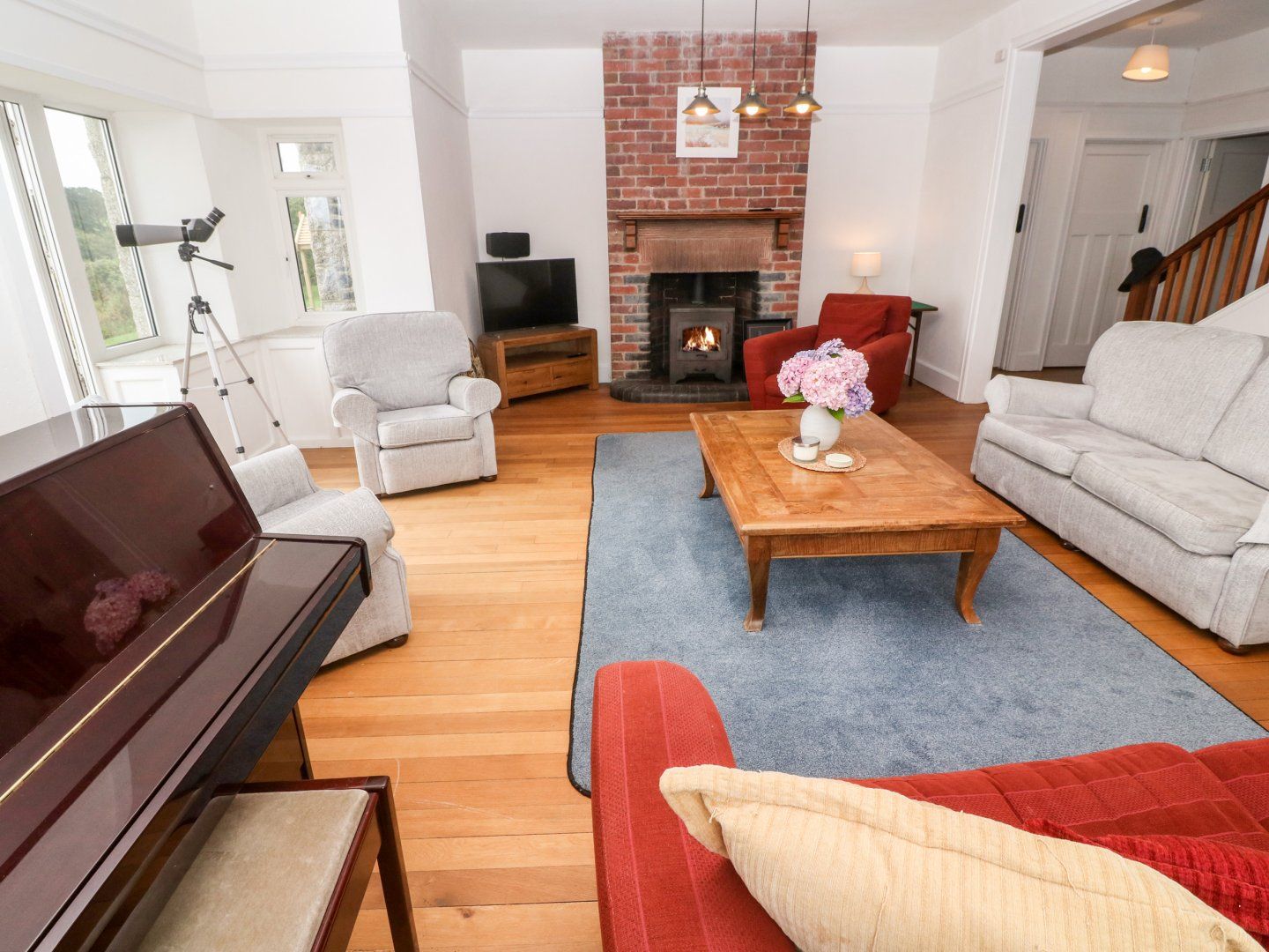 Accomodation Details Five bedrooms: 2 x king-size with en-suite walk-in shower, basin and WC, 1 x double with en-suite walk-in shower, basin and WC, 1 x ground-floor double en-suite walk-in shower, 1 x twin with en-suite walk-in shower, basin and WC. Bathroom with freestanding bath, basin and WC. Ground-floor shower room with en-suite walk-in shower, basin and WC. 2 x Cloakroom with basin and WC. Kitchen. Diner with woodburning stove. Utility. Sitting room with woodburning stove. Snug with sofa