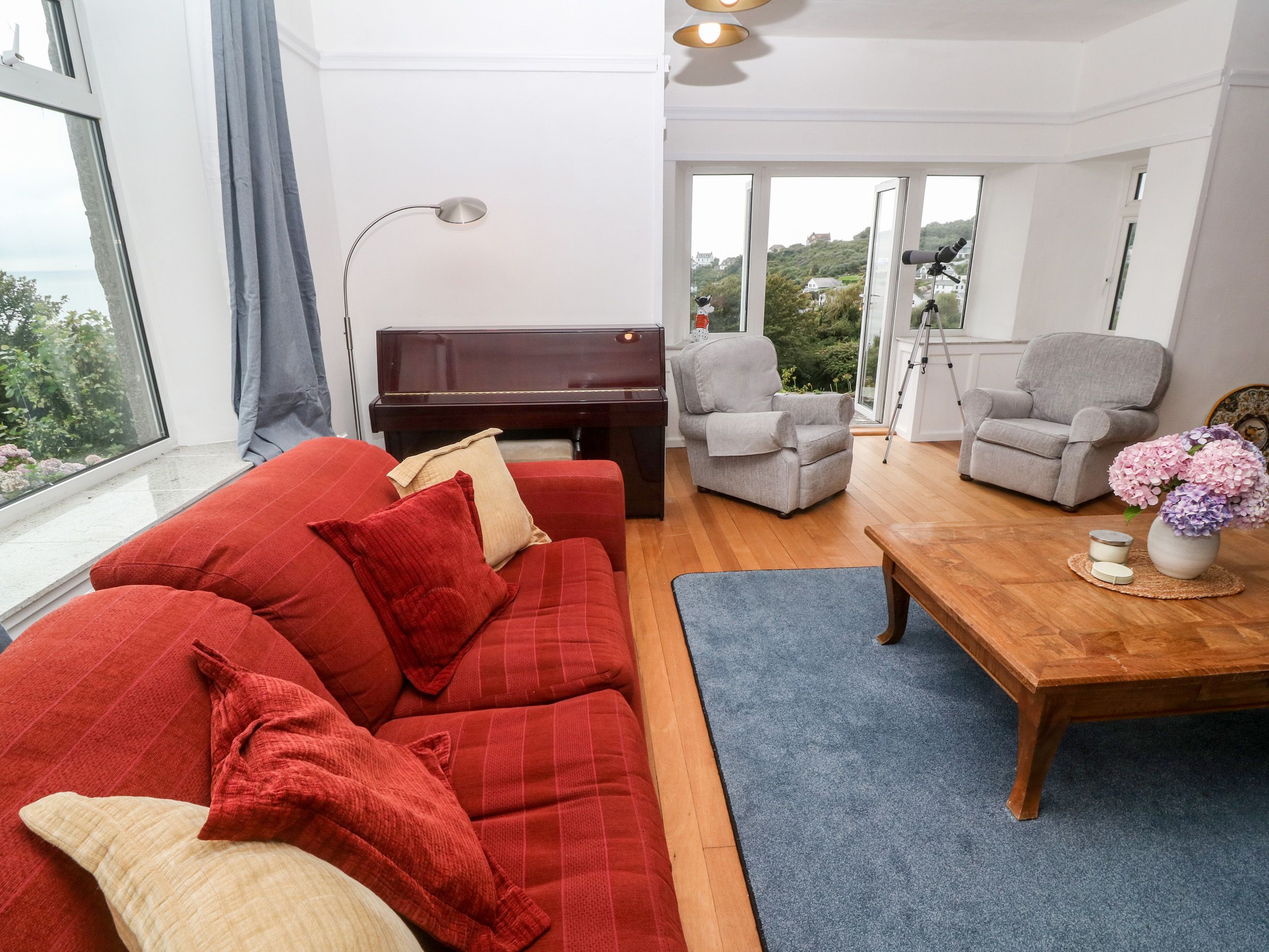 Holiday home Penmarth House is a panoramic detached cottage resting in Coverack, Cornwall. Hosting five bedrooms, including a king-size with en-suite shower room, two doubles with an en-suite shower, a ground-floor double and a twin with en-suite shower room, along with a bathroom, a ground-floor shower room and two cloakrooms, this property can sleep up to ten guests. There is also a kitchen, a kitchen/diner with a woodburning stove, a utility, a sitting room with a woodburning stove and a snug with a sofa bed. Outside there is sweeping sea views, a private driveway with parking for six cars and a garden with a spacious lawn, patio, furniture, wood store and a barbecue. Penmarth House is a spacious holiday home whilst you explore this part of Cornwall.
