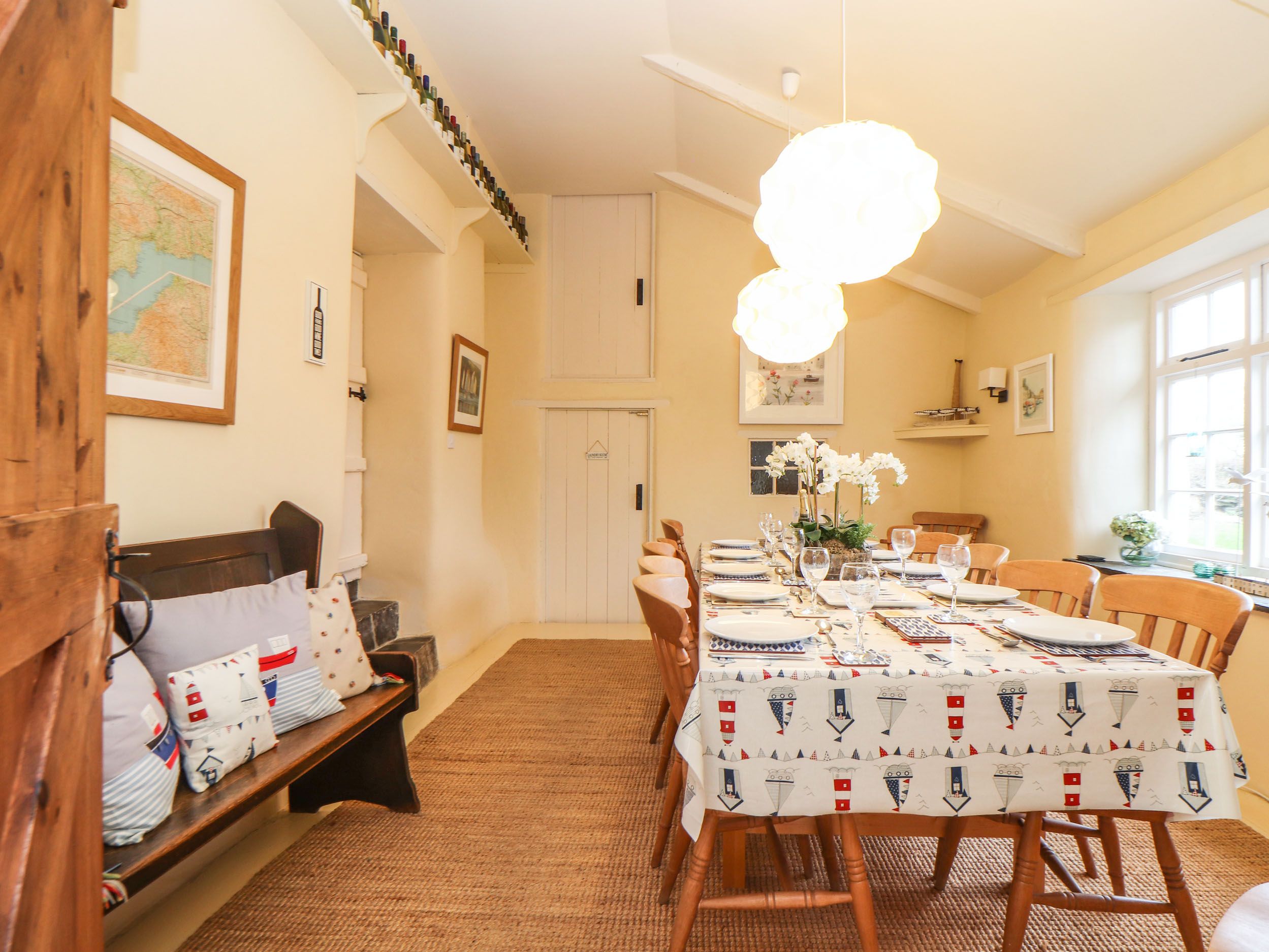 Accomodation Details Five bedrooms: 2 x king-size, 1 x ground-floor king-size, 1 x double, 1 x twin. Sleeps 8, plus 2 children. Bathroom with bath, hand-held shower, basin, heated towel rail WC and bidet. Ground-floor shower room with walk-in shower, basin, heated towel rail and WC. Kitchen/diner. Utility. Dining room. Sitting room with woodburning stove. Snug with Smart TV