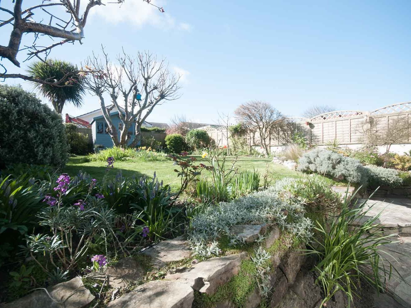 Outside Keelyn, guests will find enclosed patio and sunny garden area to the rear with a separate side entrance. The crazy paved patio is level entry to the table and chairs, there is a step up to a path that runs along the back of the dining area and a further three steps up onto the lawned area. The large lawn runs to the back of the plot. There are flower beds and a feature bed with a tree and perennials in the centre.