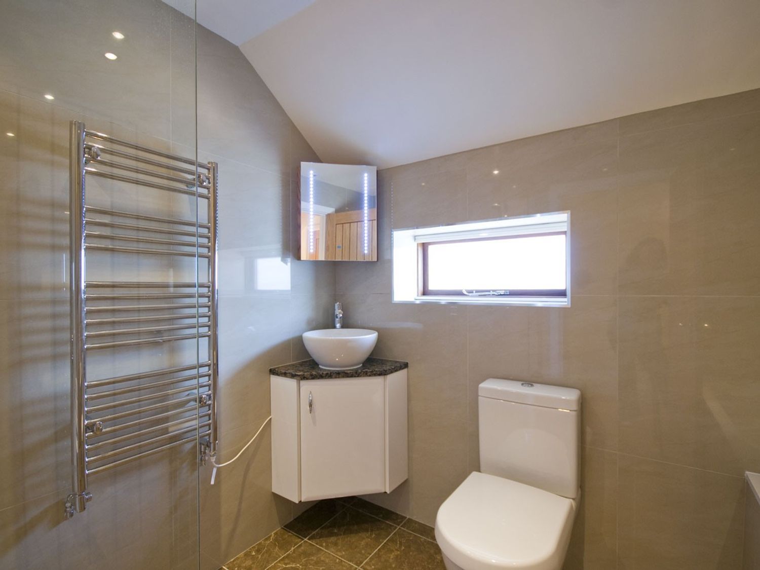 From beginning of May through to end of October only weekly bookings starting on a Friday can be accommodated. All ground floor. One super-king-size double bedroom. Bathroom with bath, walk-in shower, basin, heated towel-rail and WC. Open plan living area with kitchen, dining area and sitting area with woodburning stove