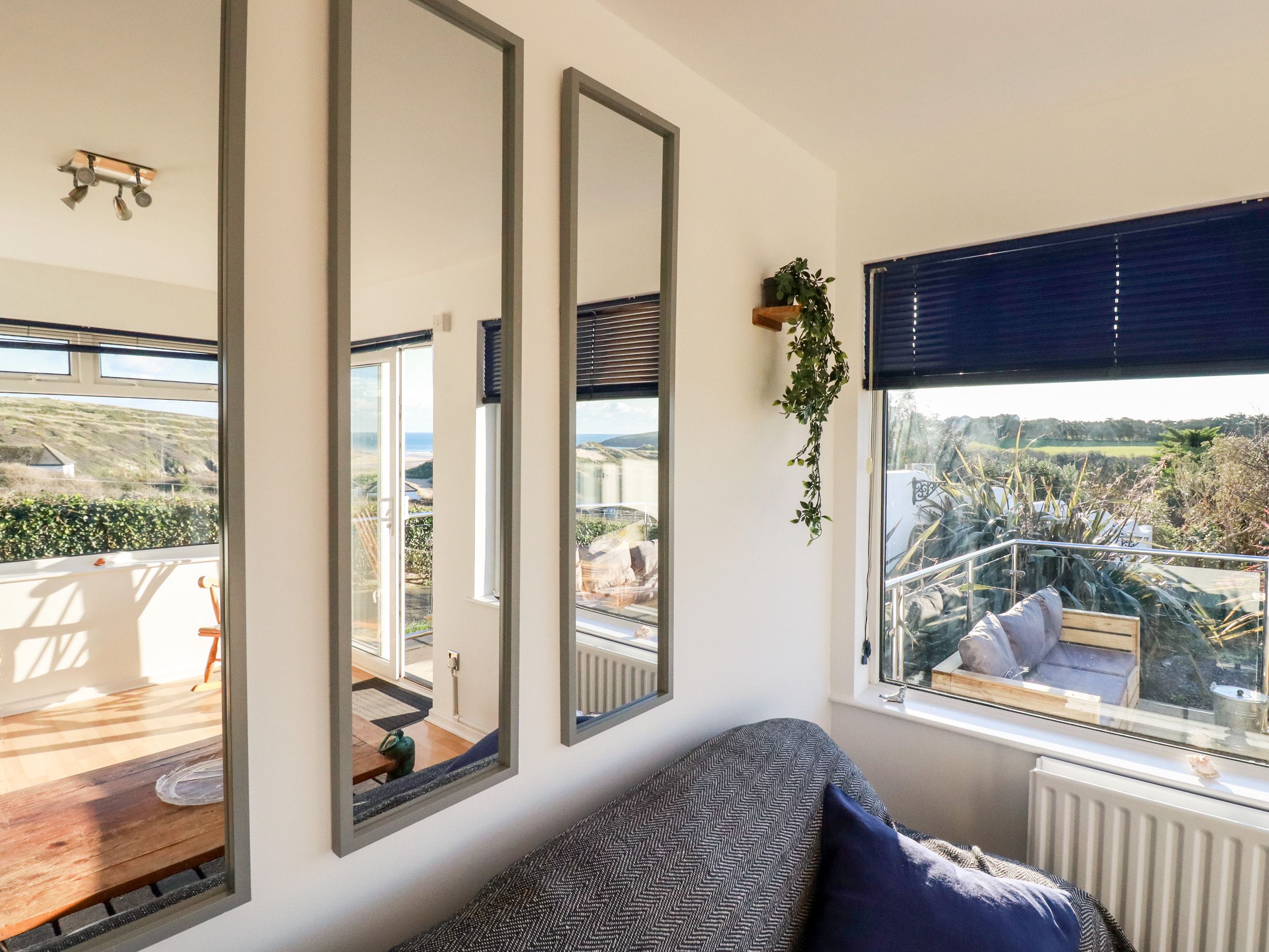 Seacroft has a kitchen, dining room with woodburning stove, a sitting room, a shared games room with TV and multi-games table, a super-king-size bedroom (zip/link) with en-suite, a double, a twin, and a bathroom. Appliances consist of an electric double oven and hob, microwave, fridge/freezer, washing machine, tumble dryer, dishwasher and TV. Outside there is an enclosed front patio with furniture, half an acre of gardens and designated parking for three cars. This is a pet-friendly home, but sorry, no smoking. WiFi, fuel, power, bed linen and towels are all included, along with a highchair, travel cot, fireguard and two stairgates. You'll find a shop in 0.3 miles, and a pub and beach in 0.2 miles. Enjoy thr Cornish coastline at Seacroft. Note: Property shares a driveway, but is on a private road and can only be accessed via the electric gate. Just a stone's throw from the dog-friendly beach and a range of local amenities, Seacroft offers the perfect base for a tranquil getaway, ideal for three couples, groups of six or families, looking to holiday with their pets in tow. Note: Property shares a driveway, but is on a private road and can only be accessed via the electric gate. Note: Please be aware, there may be queues getting to the property, please contact car park staff on site for assistance. Please note the property does not accept hen, stag or similar parties.