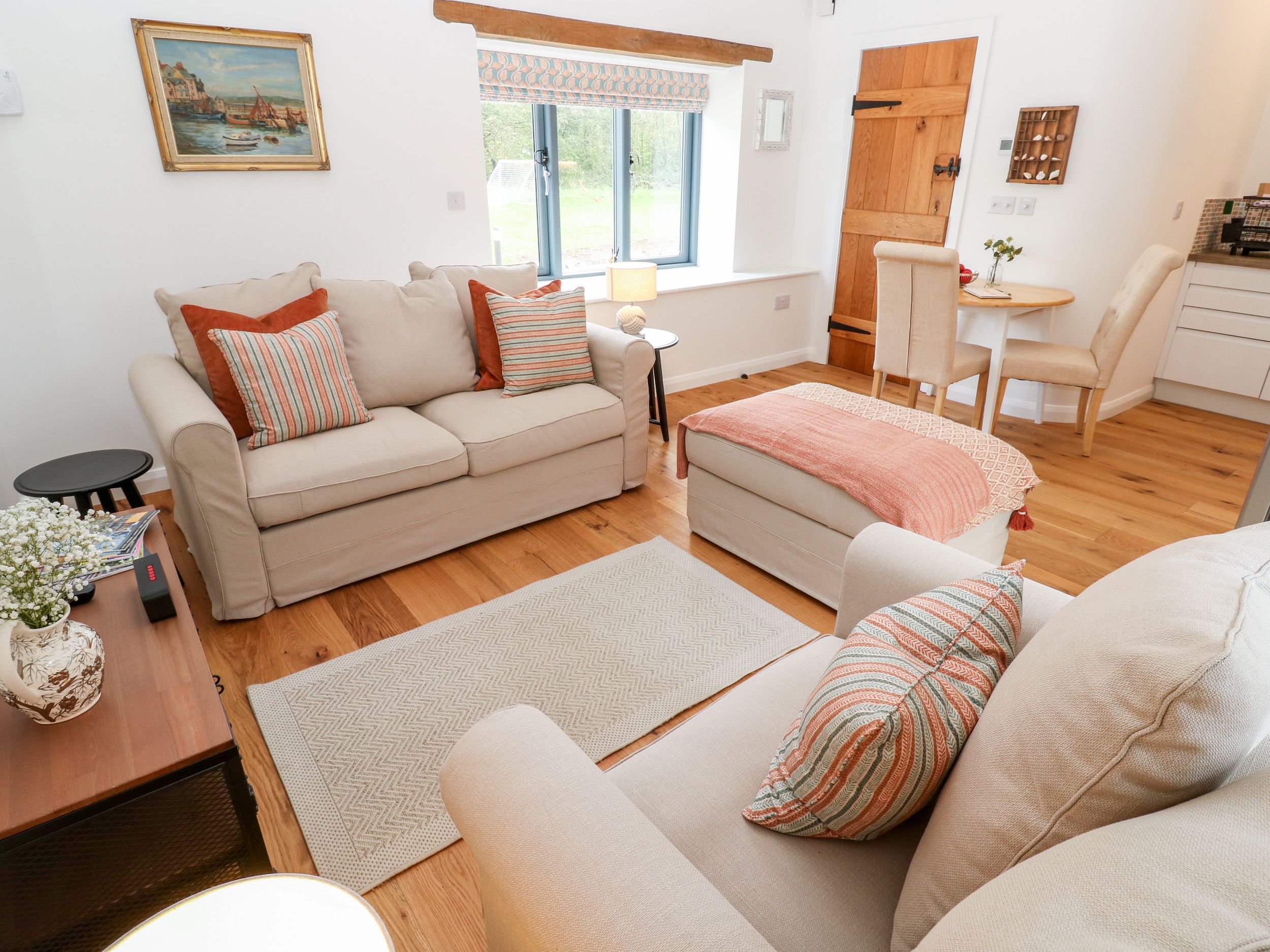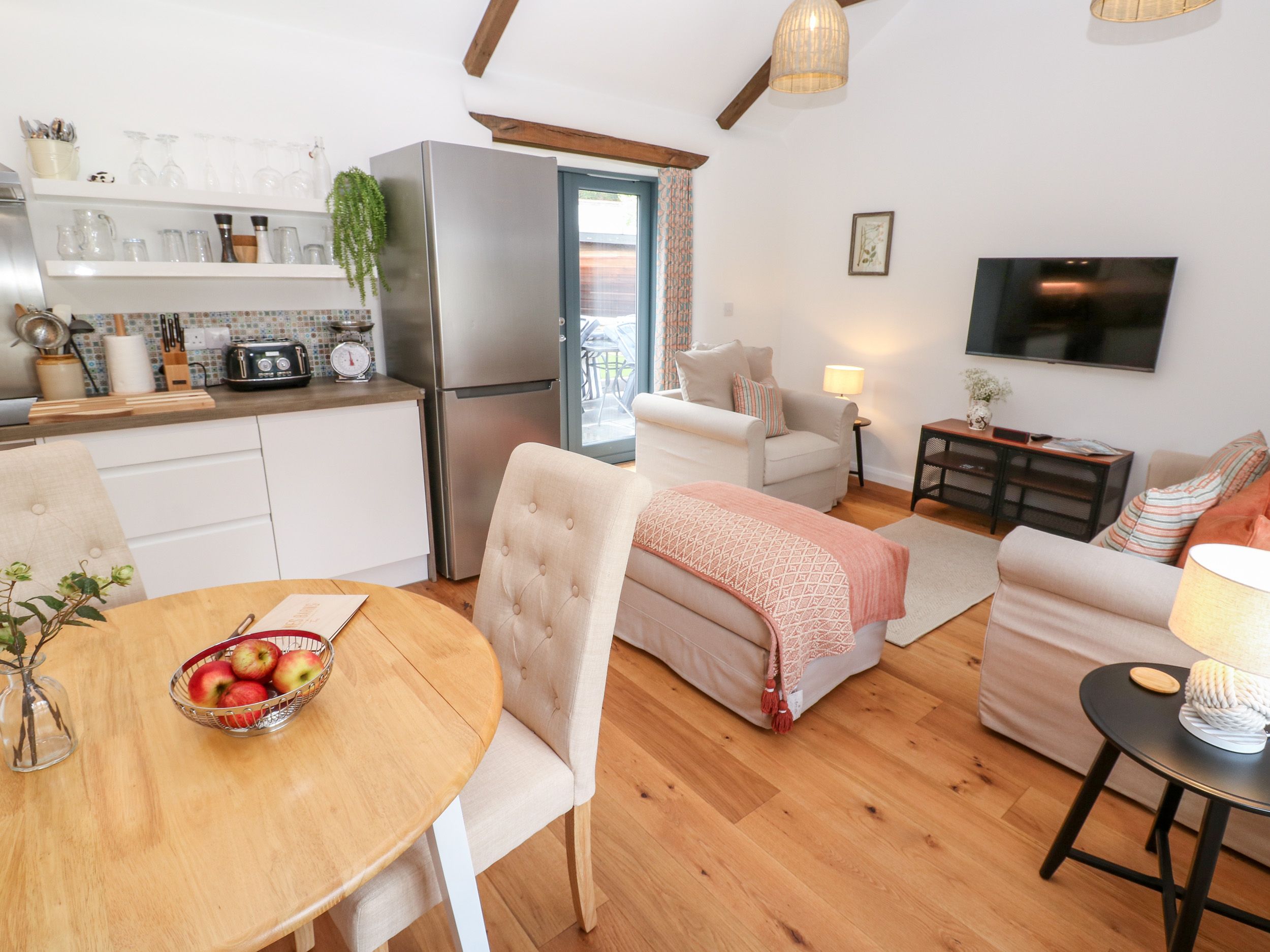Accomodation Details Single storey. One super-king-size zip/link (can be set up as a twin on request). Bathroom with bath, shower over, basin and WC. Open-plan living space with kitchen, dining area and sitting area