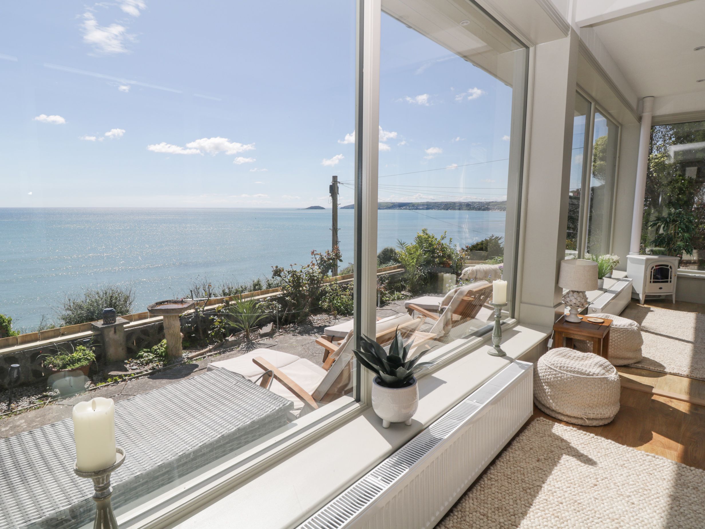 Accomodation Details Refurbished May 2024, reroofed, replastered, new central heating system, new water pressure system, new garden room, new shower room, new glass atrium, new sofas and garden furniture, new parking bay. Single-storey and boasting 180 degree views of the sea. Three bedrooms: 1 x king-size with basin and TV, 1 x twin and 1 x single. Bathroom with bath, walk-in shower, basin, and WC. Shower room with walk-in shower, basin, and WC. Sitting room with electric fire and glass atrium in the ceiling for star gazing. Double glazed Garden room with spectacular view of the sea, central heating, electric woodburner. Kitchen with TV, electric oven and hob, microwave, fridge/freezer, washing machine, tumble dryer, dishwasher. Dining room with seating for 5 people and also offering sea views..