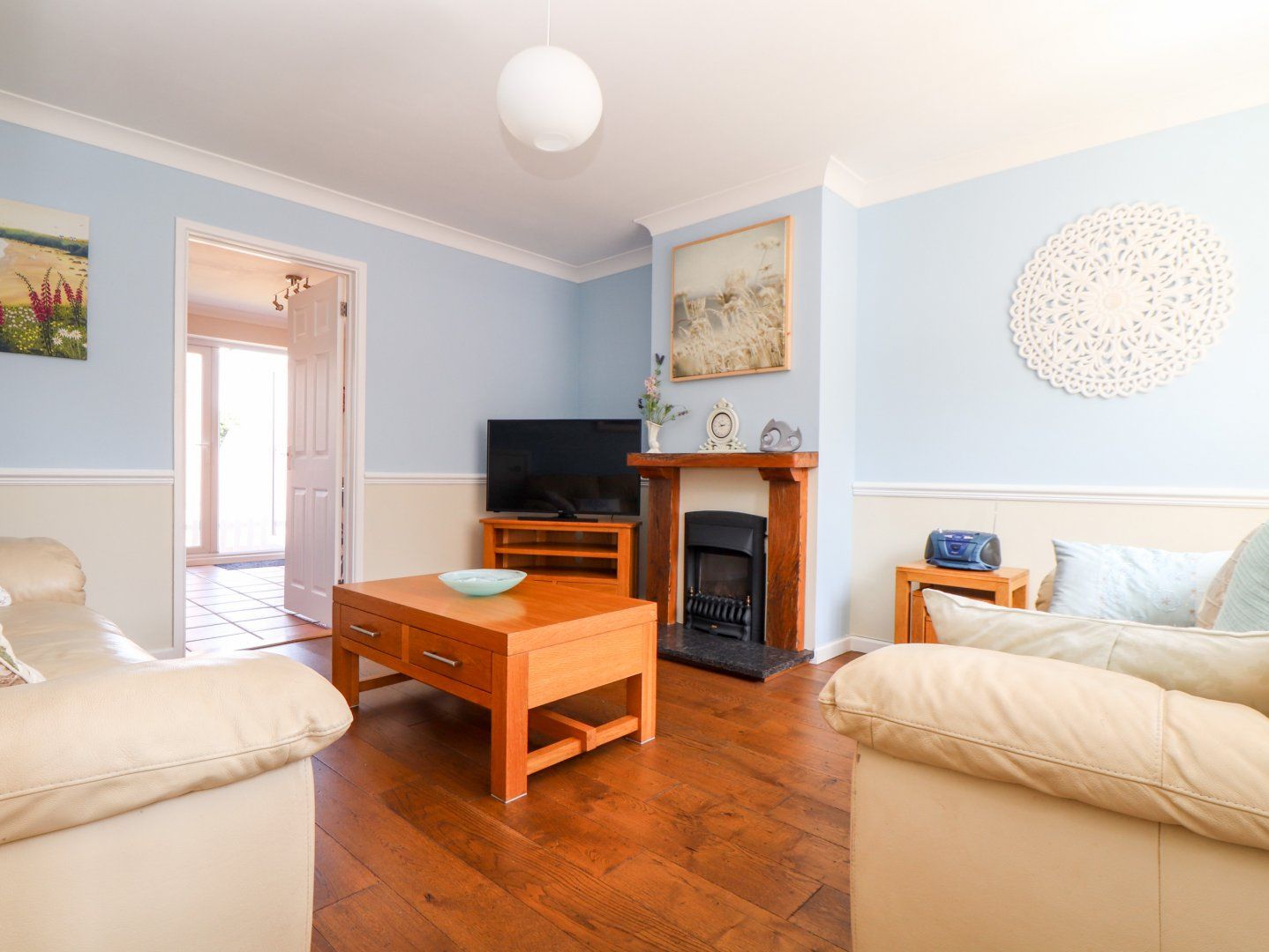 Full gas central heating with gas fire. Electric oven, gas hob, microwave, fridge/freezer, washing machine, tumble dryer, dishwasher and coffee maker. Wi-Fi. Smart TV. Fuel and power inc. in rent. Bed linen and towels inc. in rent. Highchair, travel cot and stair-gate available on request. Private driveway for 1 car and garage parking for one car. Enclosed rear garden with lawn, patio, picnic table, reclining chairs and charcoal barbecue. Suitable for up to 4 adults and 2 children. Sorry, no pets or smoking. Sorry, no stag/hen. Shop 1 miles, pub 0.9 miles, beach 1 mile. Note: Bookings for any other reason than holiday/leisure are not permitted. This property cannot be used as private accommodation for work or business trips. Notes: A maximum of 14 nights only permitted at this property.