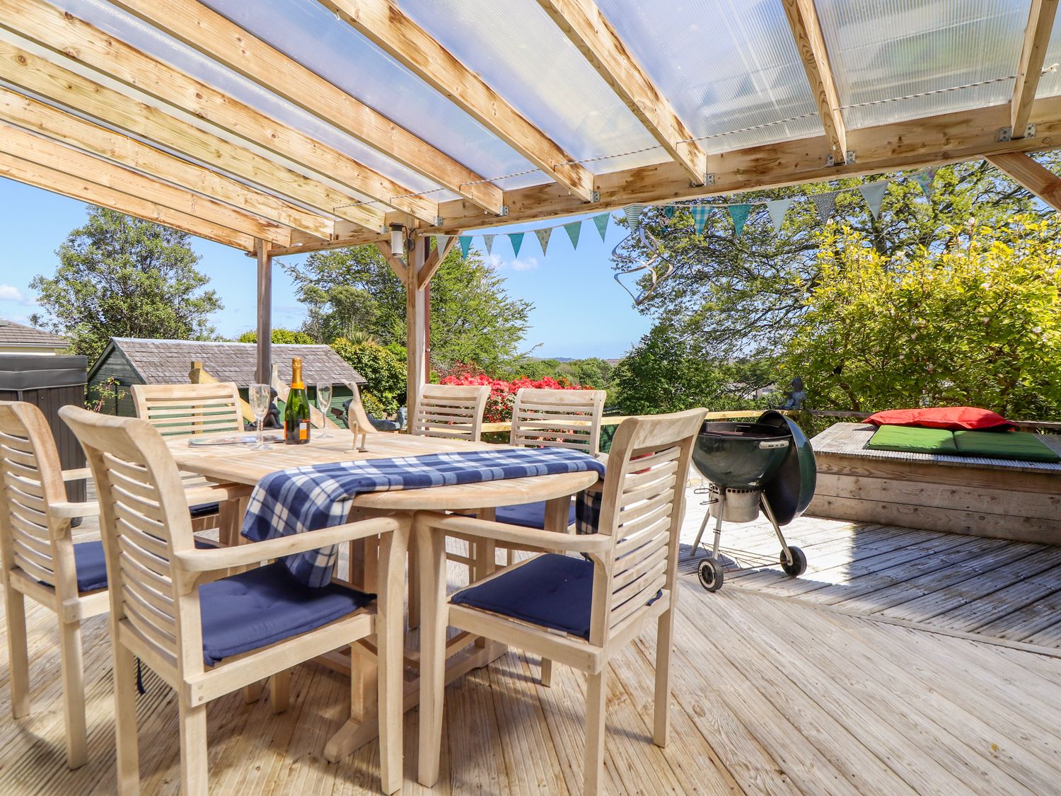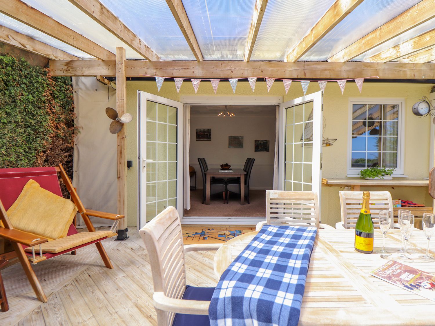 Holiday home Mariners is a wonderful cottage resting in the town of Penryn, Cornwall. The property hosts three bedrooms: one ground floor double, one ground floor twin and one first floor king-size with en-suite shower room, sleeping six people and served by a ground floor shower room. Offering an open-plan fitted kitchen and dining area, a separate utility and sitting room with a gas coal effect fire. Outside has an enclosed lawned garden and decking area with furniture. Off-road parking is available for three cars. Mariners is the perfect choice for a family holiday near the coast of Cornwall.