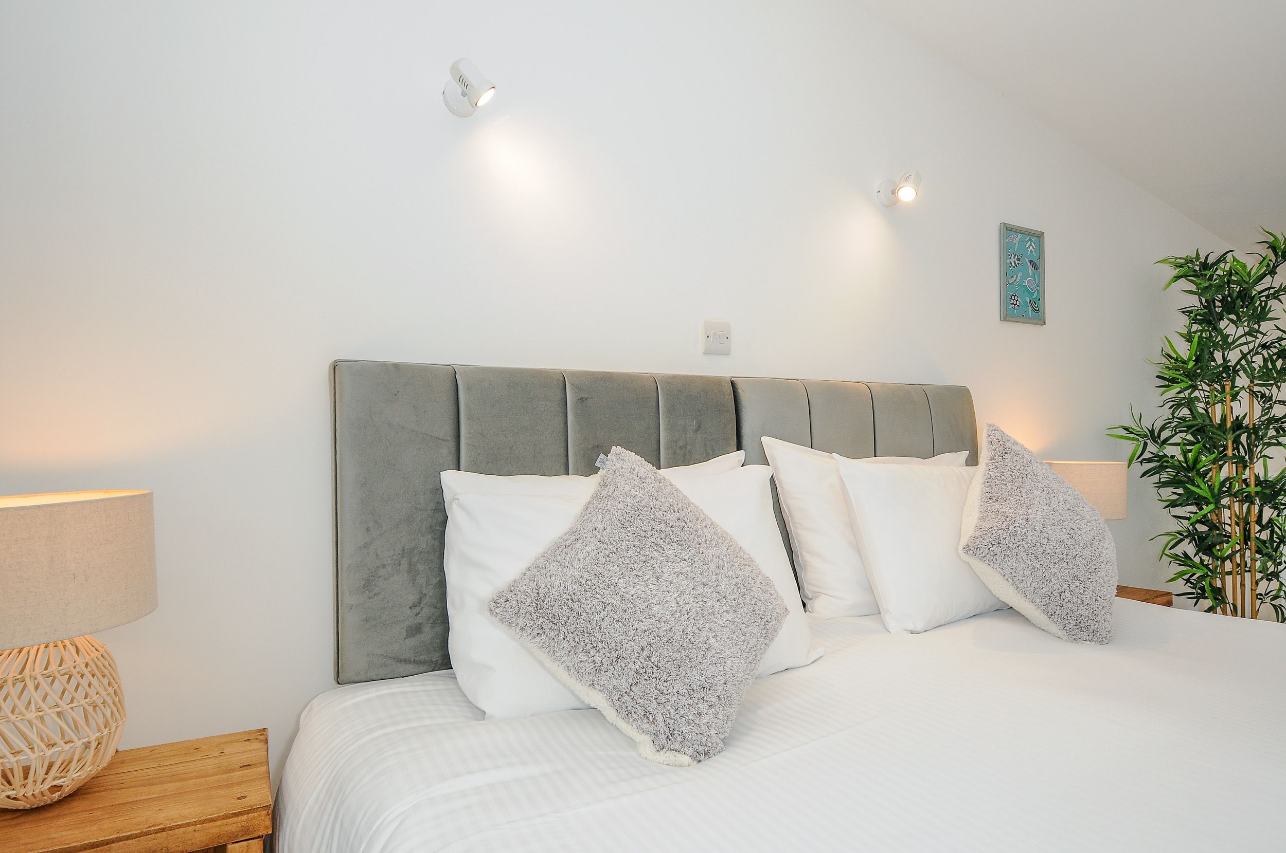 Accomodation Details Perfect for couples or a small family with a young child. One king-size (zip/link, can be twin on request) mezzanine-style bedroom. Ground-floor shower room with walk-in shower, basin, heated towel rail, and WC. Open-plan living space with kitchen, dining area and living area.