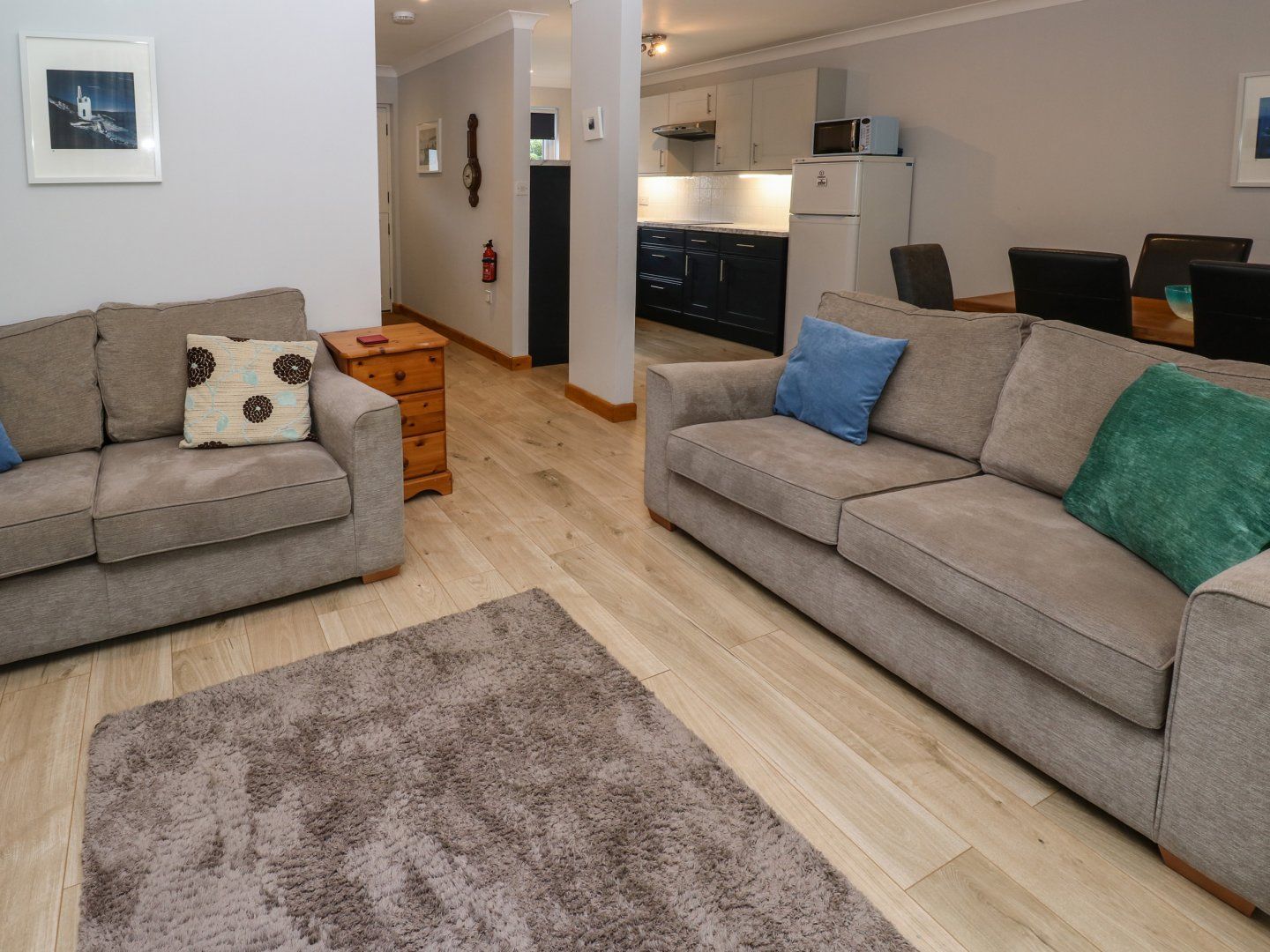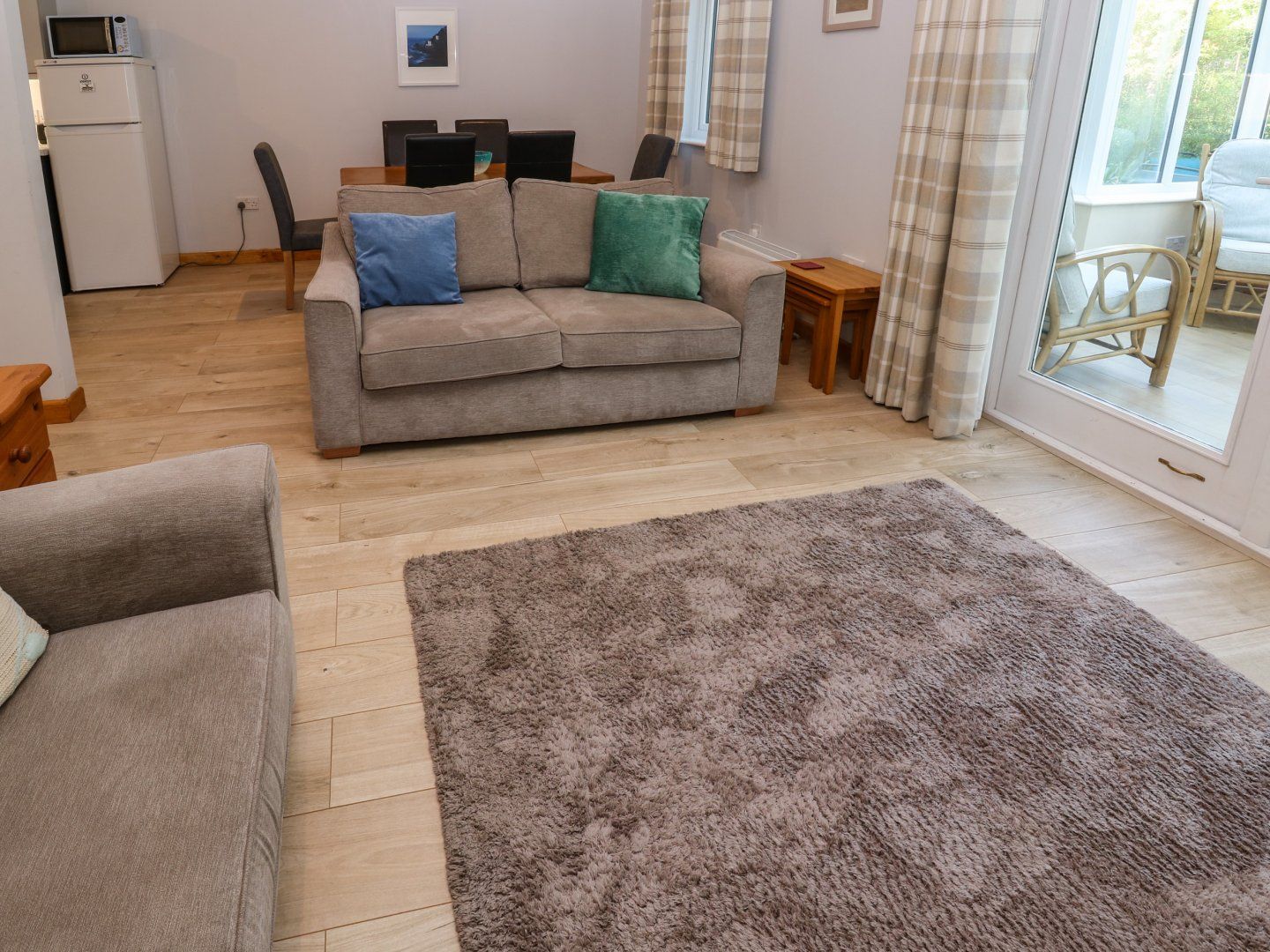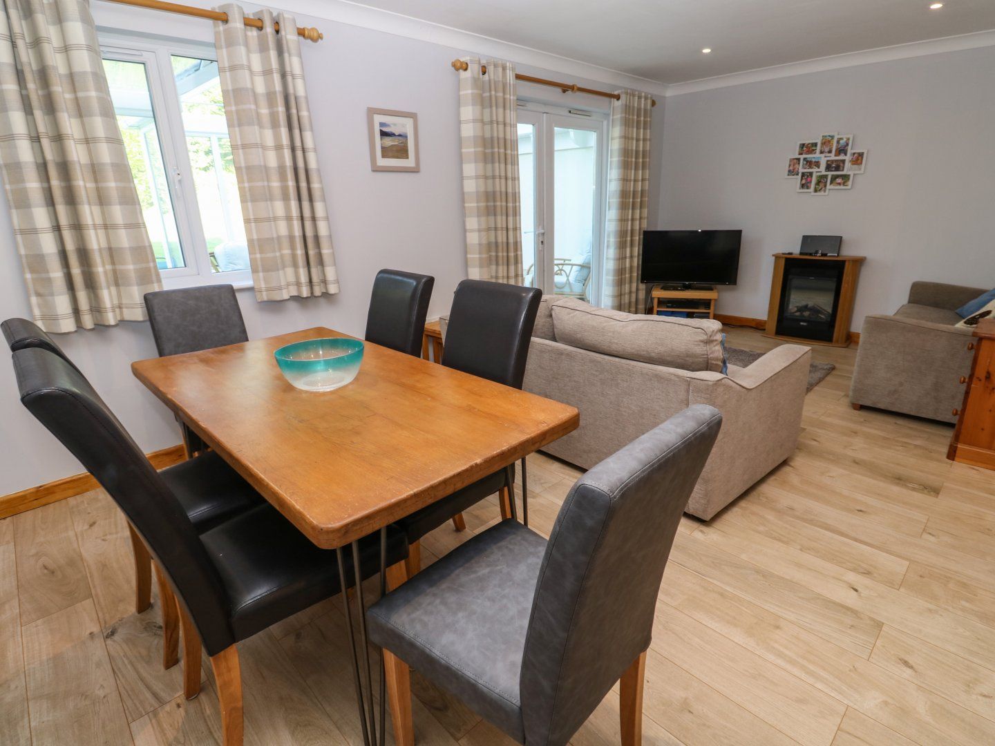 Three bedrooms: 1 x double with TV, 1 x double, 1 x twin with 3’ singles. Bathroom with bath, shower over, basin and WC. Cloakroom with basin and WC. Open-plan living space with kitchen, dining area and sitting area. Conservatory
