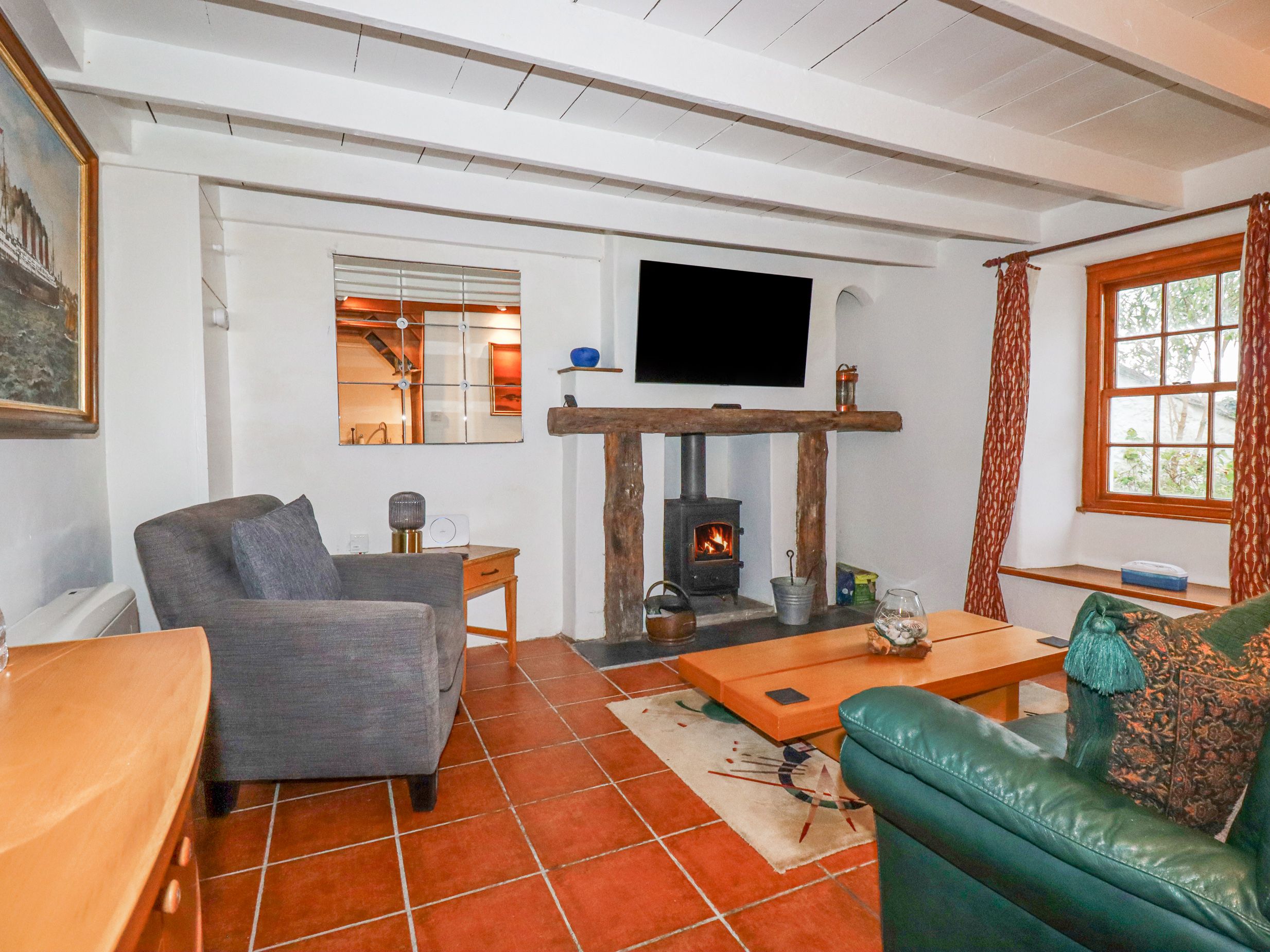 Amenities Electric Storage Heaters in main property with underfloor heating in bathroom. Electric oven, induction hob, microwave, fridge/freezer, washing machine, dishwasher. 2 x Smart TV's, selection of books, WiFi. Fuel, power, and starter pack for woodburning stove inc. in rent. Bed linen and towels inc. in rent. Roadside parking for 1 car. Enclosed rear garden with patio, gravel and furniture. Sorry, no pets and no smoking. Shop 0.1 miles, pub 0.2 miles, river and coast 0.1 miles. Note: The property is on a steep hill
