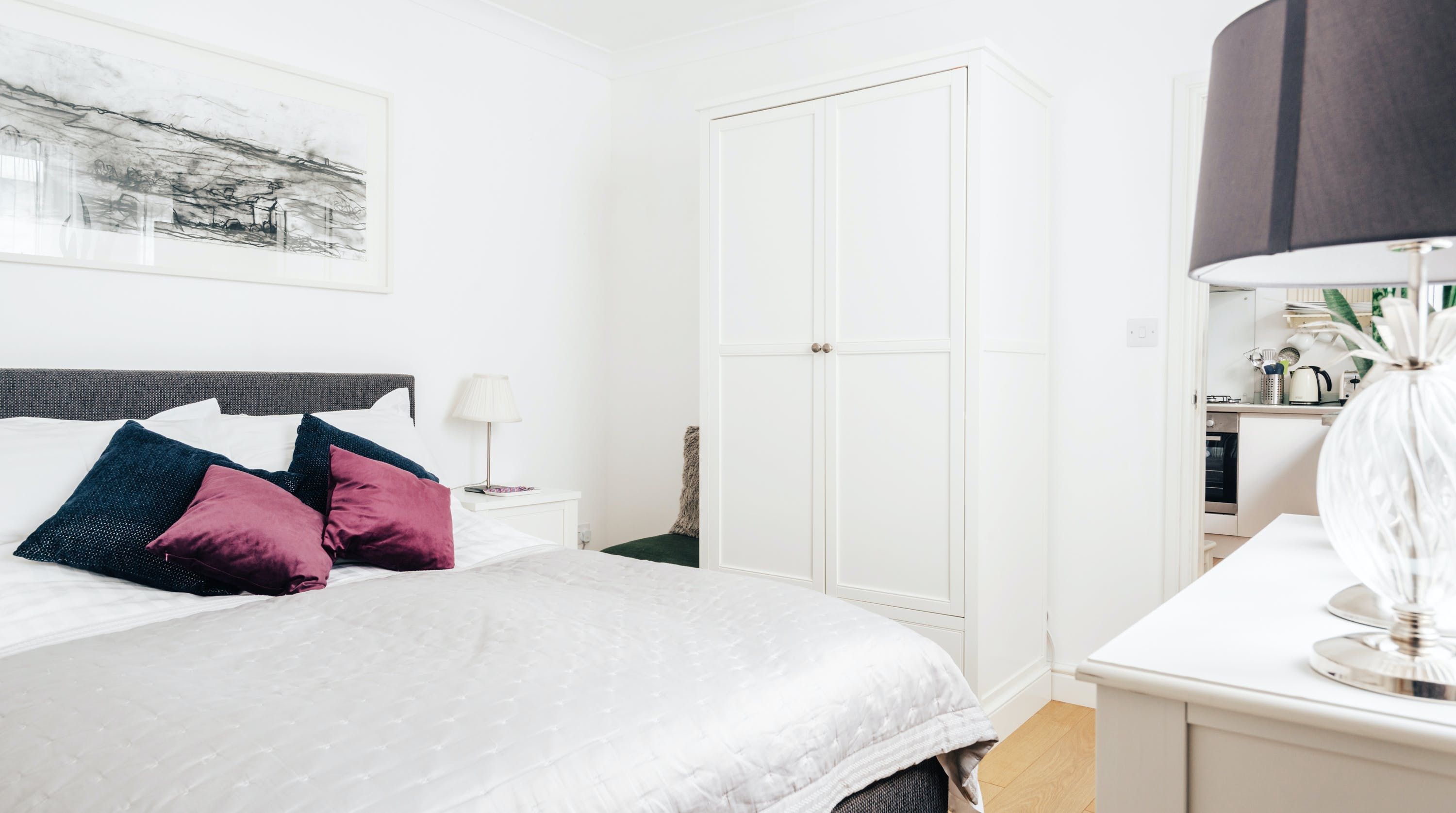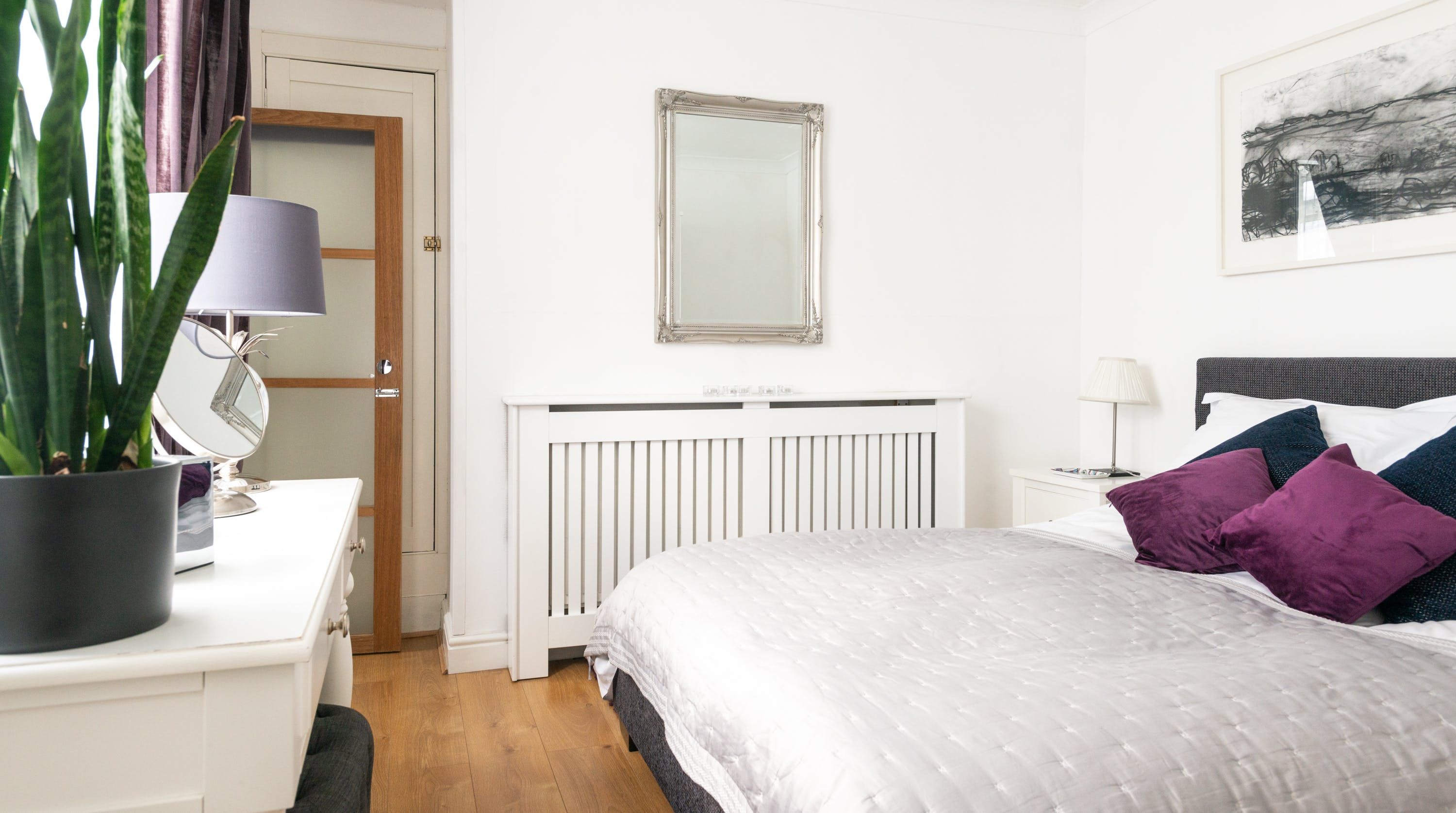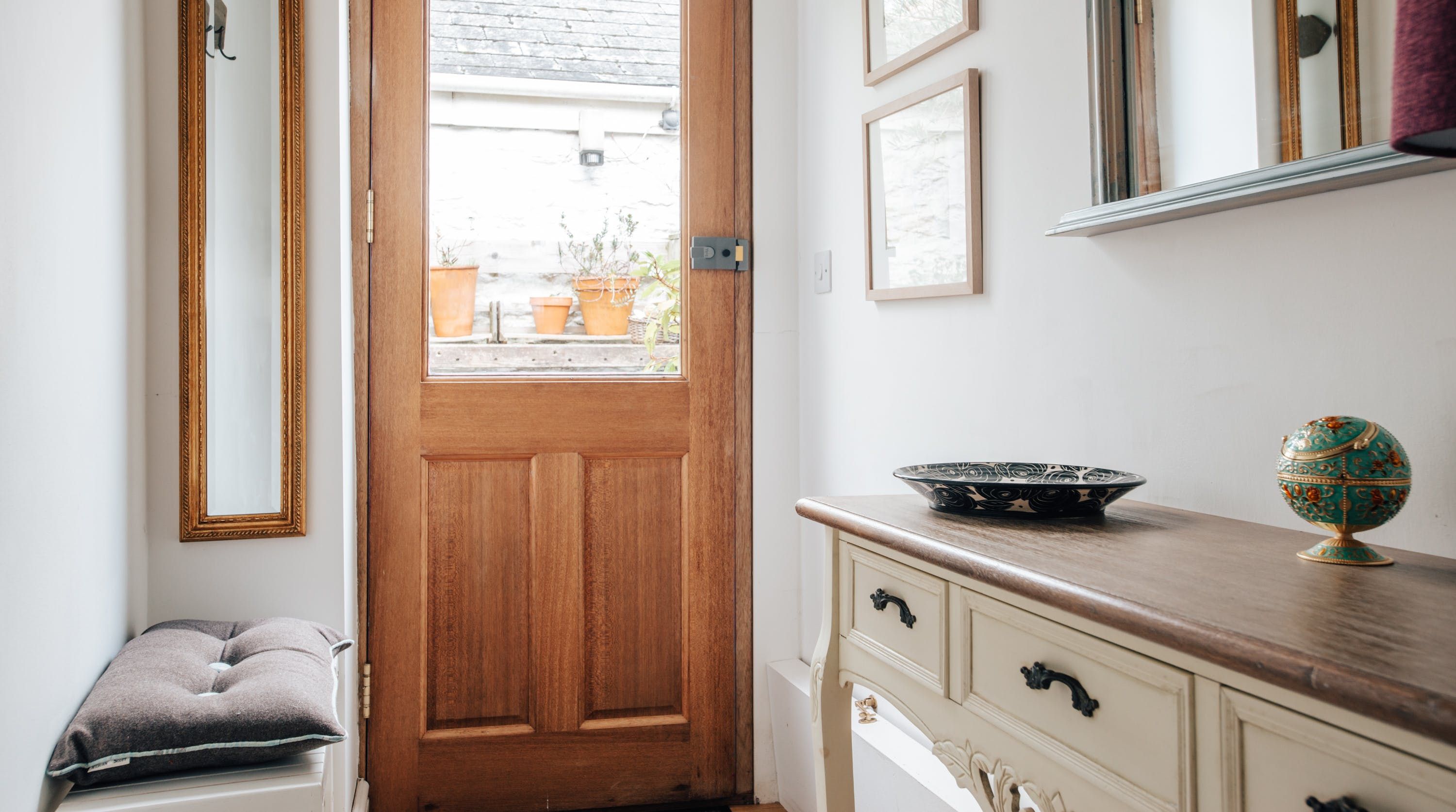 Brimming with original artwork and oozing charm, this coastal cottage is a real knock-out. We love every inch, from the inviting living space to the sumptuous bedroom. It's snug, but that's what makes it so cosy, and for a small space, it sure is packed with personal touches. Egyptian cotton sheets, electric fireplace, fluffy bathrobes, beach essentials, a welcome basket overflowing with breakfast items – your host has all the little details taken care of. As much as we adore the lovely kitchen, our favourite spot has to be the rustic courtyard. Dotted with olive trees and surrounded by leafy potted plants, it's the perfect place for morning coffees, alfresco dinners and evening tipples as the sun goes down. As far as locations go, this home is close to everything – it's only a ten-minute walk to Gyllyngvase Beach and five minutes to the restaurants, shops and pubs along the waterfront. While there's private parking on-site, you won't need the car for much. Don your comfiest shoes and set off on foot instead, exploring Falmouth's coastal walks, art galleries and cafes with ease.