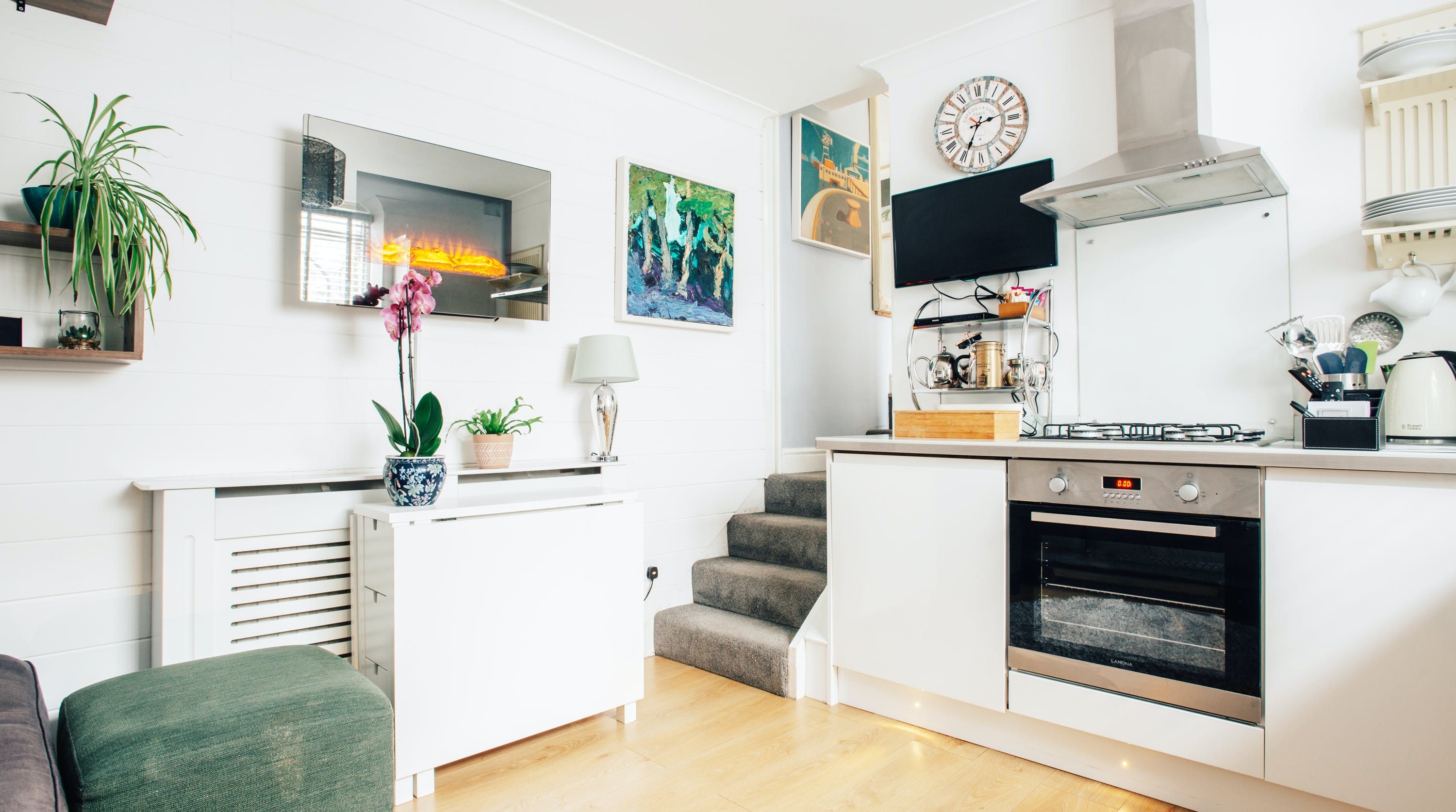 *There's no formal dining table – instead, there's a small fold-out table that you can use while sitting on the sofa