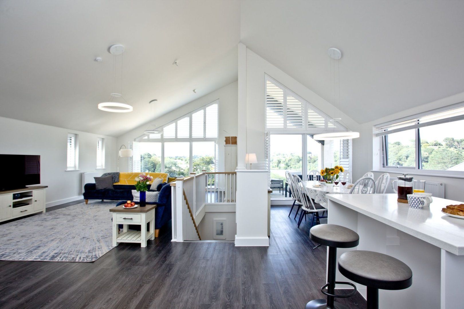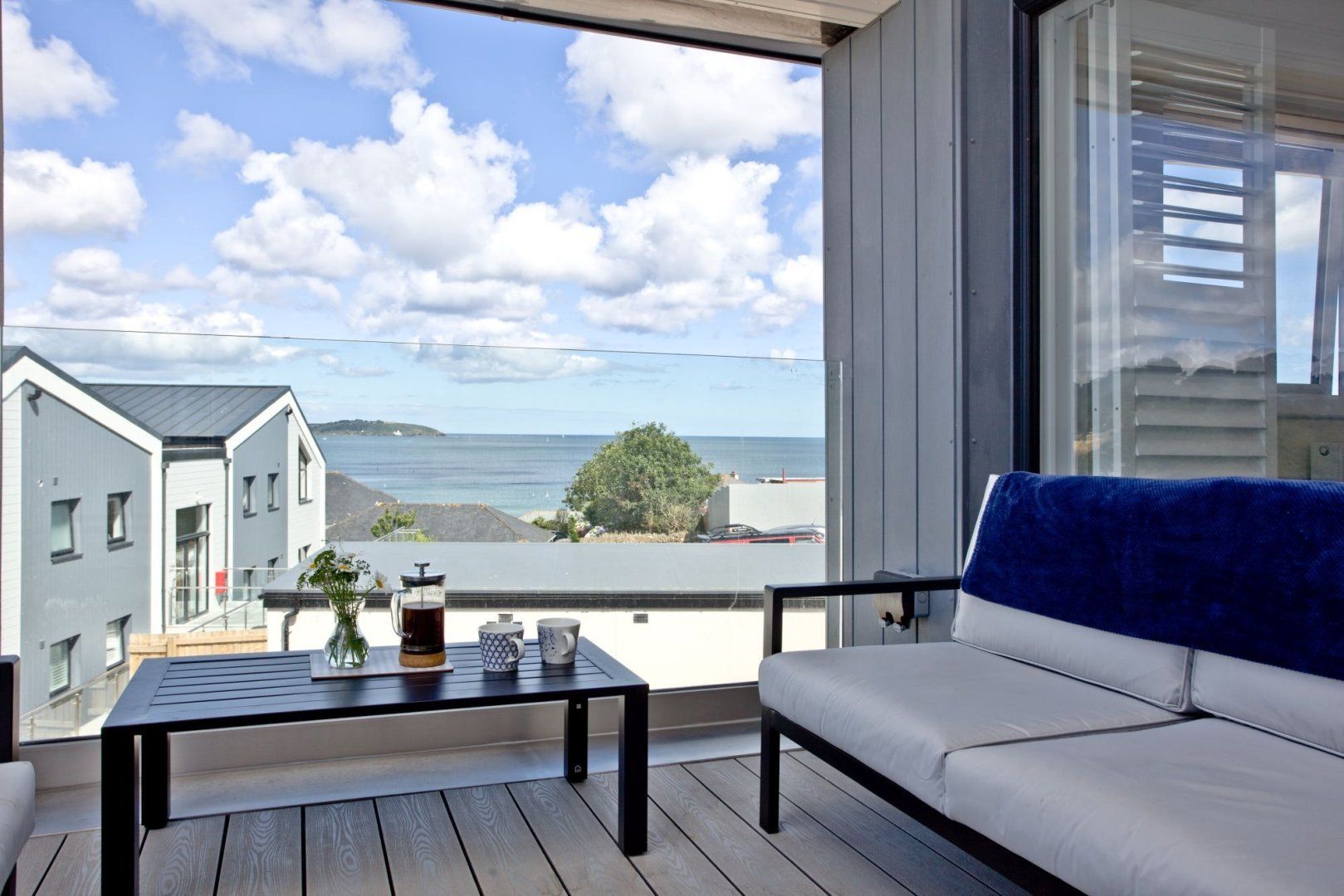 Some homes are designed around a view and this is one of them. Perched close to the Cornish coastline, it's possible to gaze out at peaceful vistas of Swanpool lagoon or Falmouth Bay, depending on which of the floor-to-ceiling windows you're standing next to at any given moment. The best spot at the address, however, has to be the covered balcony, from which you can enjoy the coastal panorama with a sea breeze on your skin.