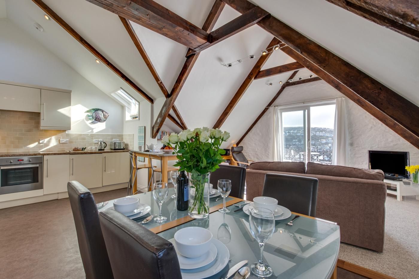 This third-floor apartment is in an incredible location in Fowey with amazing views of the harbour and estuary across to Polruan.