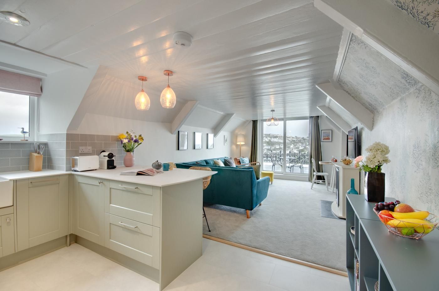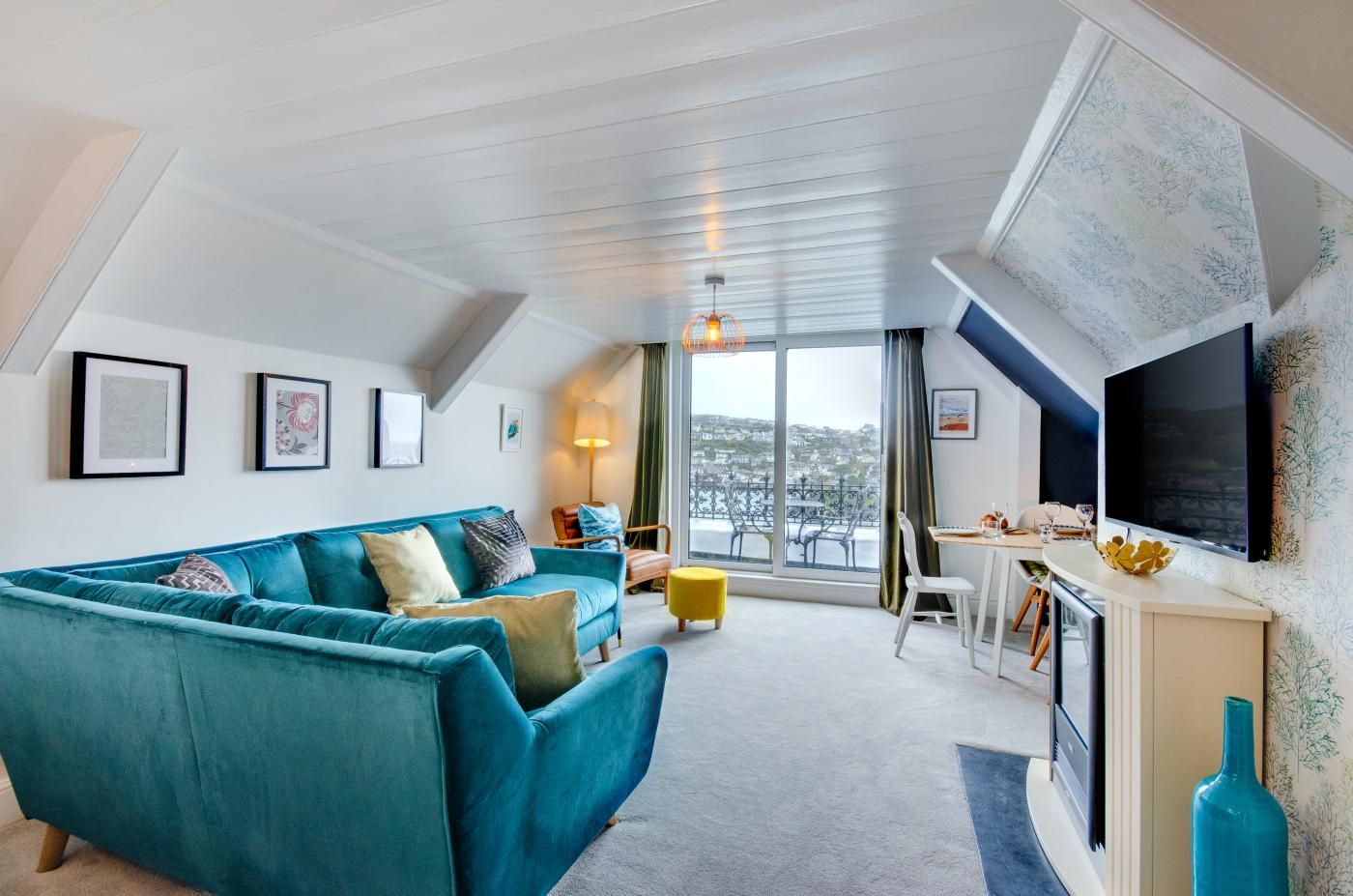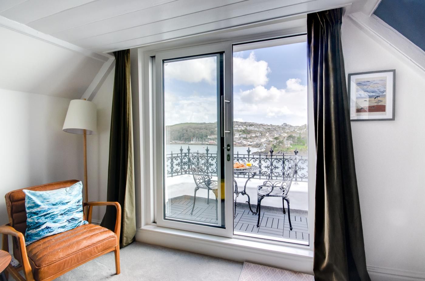 Soak up the river views from the balcony of this special penthouse apartment in a prime location of Fowey.