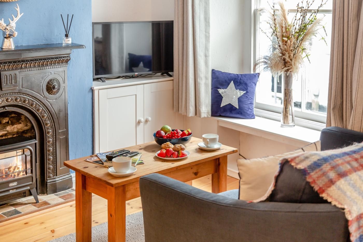 Light, bright and airy, the living room is a quirky space with a sofa, a Smart TV and a feature electric fire creating a perfect environment for evening relaxation with your loved ones.