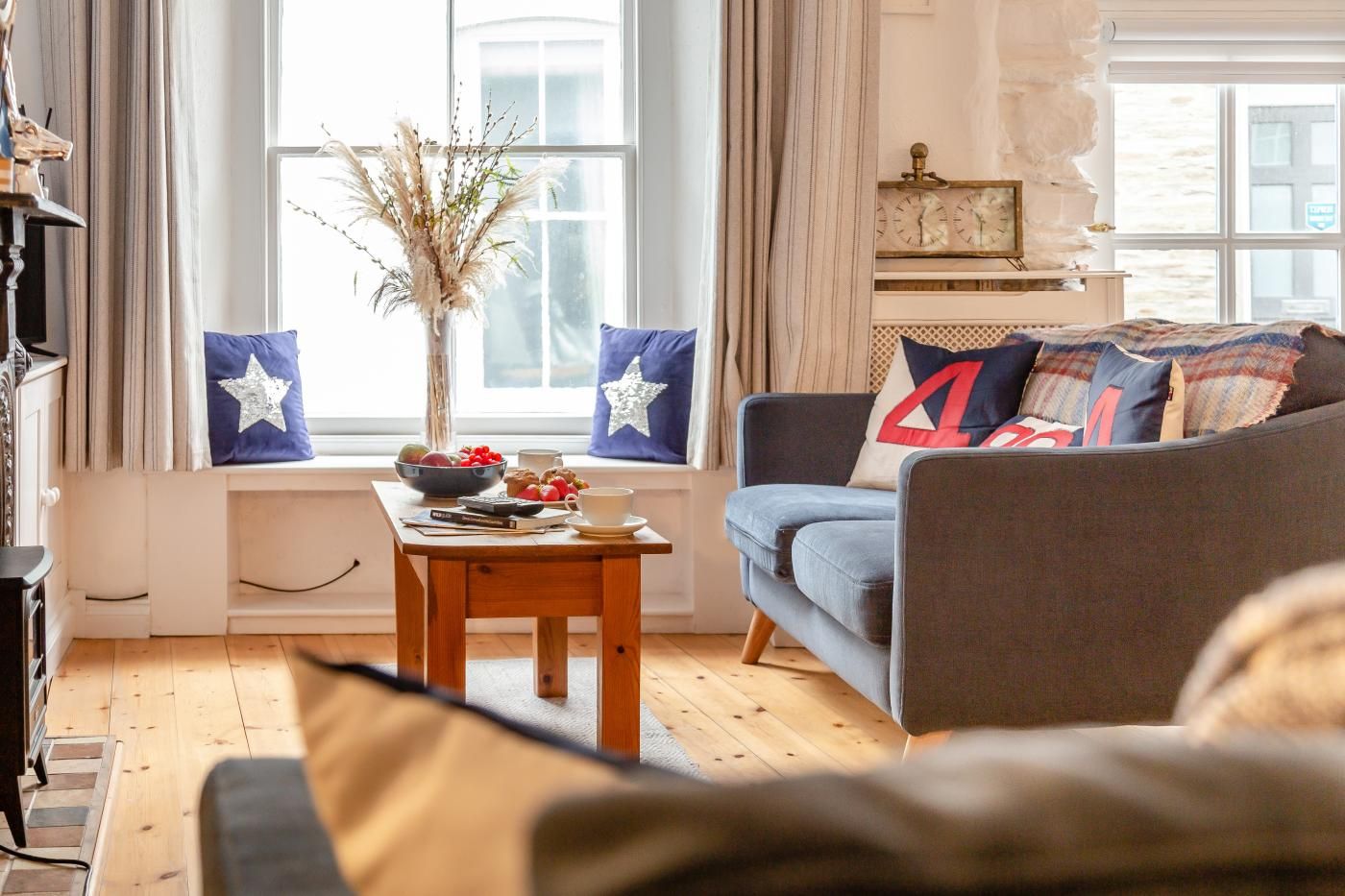 With a fun nautical theme and modern decor, this family-friendly cottage on the coast is a wonderful place for a seaside getaway.