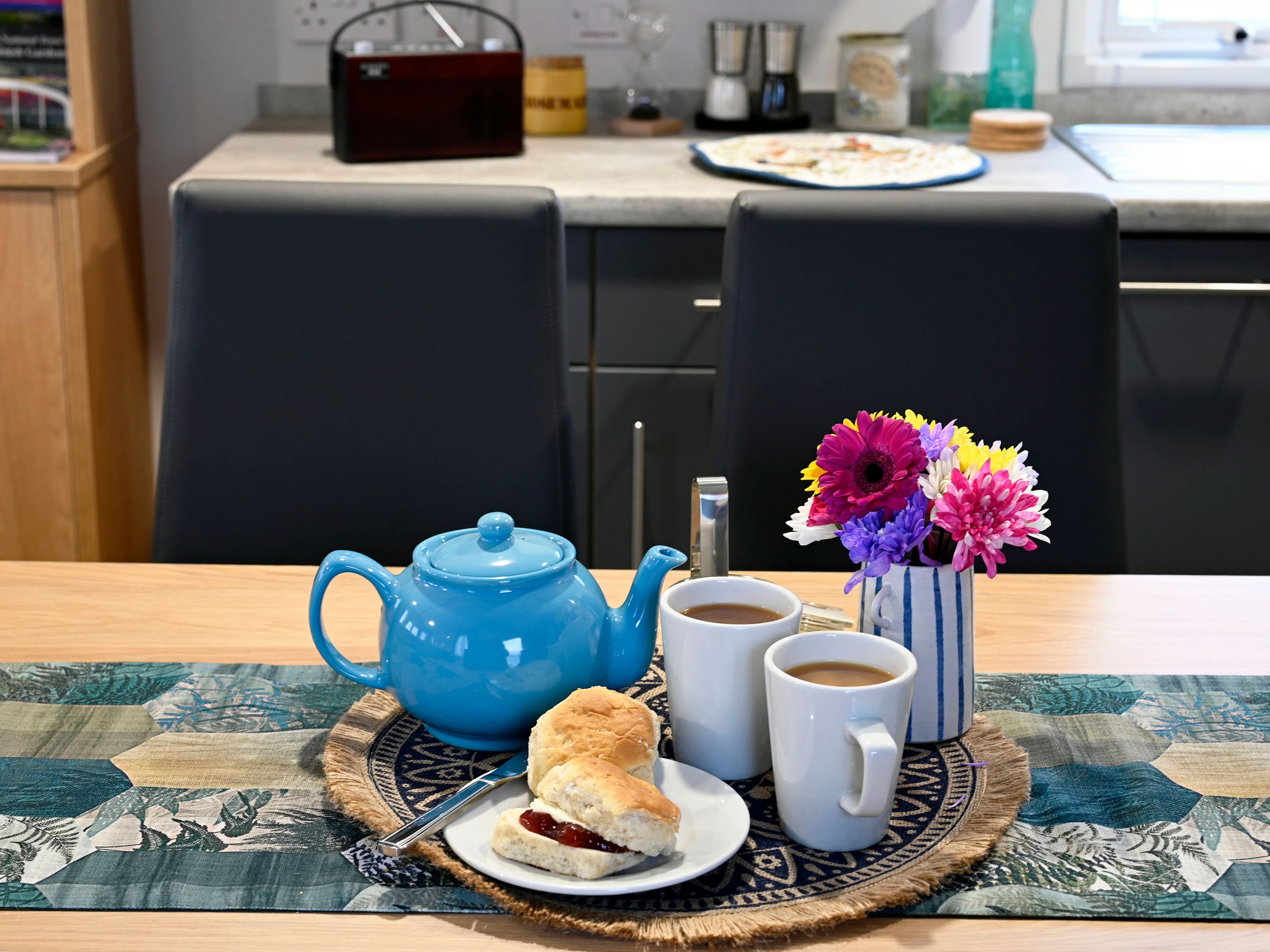Amenities Thermostat controlled gas central heating with electric fire, Gas oven and hob, microwave, fridge/freezer, dishwasher, 43" HD Smart TV, Bluray Player, Iron and & ironing board ,Hairdryer ,Off-road parking ,Decking with furniture. Bed linen and towels are provided.