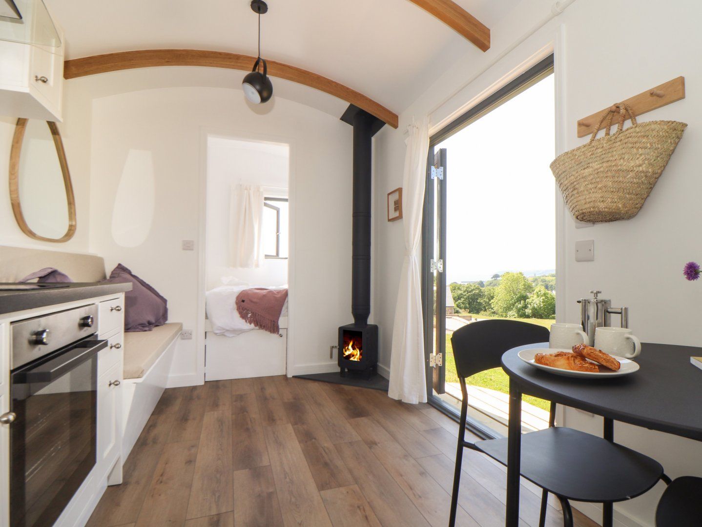 Amenities Electric central heating. Electric oven and 2-ring hob, fridge with ice box, kettle. TV, WiFi, selection of games. Fuel, power and starter pack for woodburning stove inc. in rent. Bed linen and towels inc. in rent. Off-road parking. Private front gravelled area and lawn with furniture and fire pit. Sorry, no pets and no smoking. Shop 0.9 miles. Beach 2.4 miles. Note: This is an adult-only property. Note: There are three steps up to the property