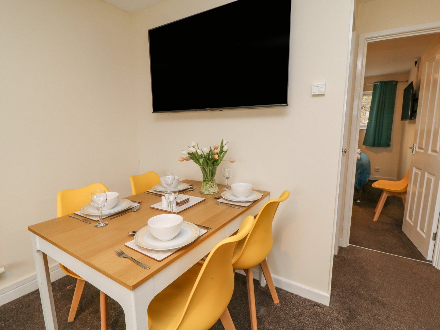 Electric central heating. Electric oven, electric hob, microwave, fridge, freezer, washing machine, dishwasher, hairdryer. 2 x Smart TV, WiFi, selection of games. Fuel and power inc. in rent. Bed linen and towels inc. in rent. Highchair and travel cot available. Off-road parking for 1 car, with additional on-site parking. Enclosed front patio with furniture. One well-behaved dog welcome. Sorry, no smoking. Shop 1.5 miles, pub on-site. Note: The washing machine is located in the hallway, near the bathroom. Note: Guests have access to a range of on-site facilities, including indoor and outdoor swimming pools, a gym, a bar and restaurant, and a tennis court