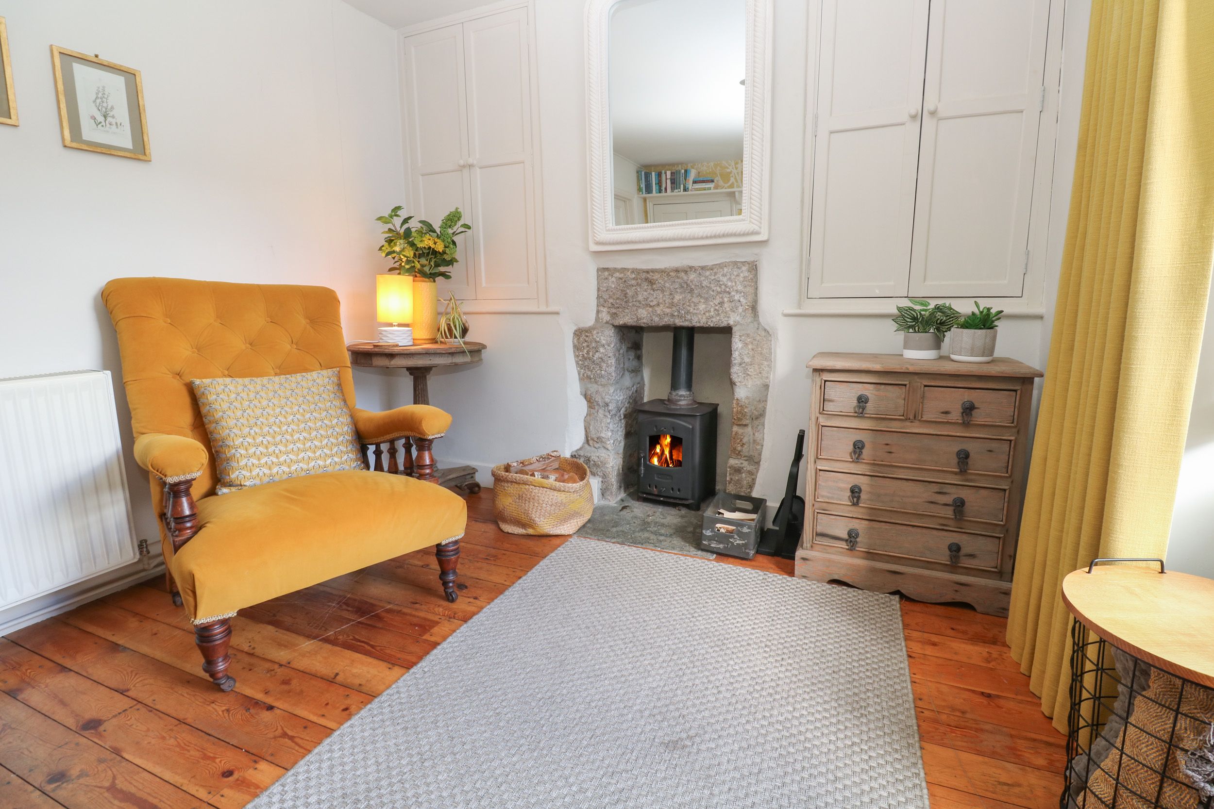 Two bedrooms: 1 x super-king-size, 1 x 4 ft double. Shower room with walk-in shower, basin, heated towel rail, WC. Kitchen/diner. Sitting room with wood-burning stove
