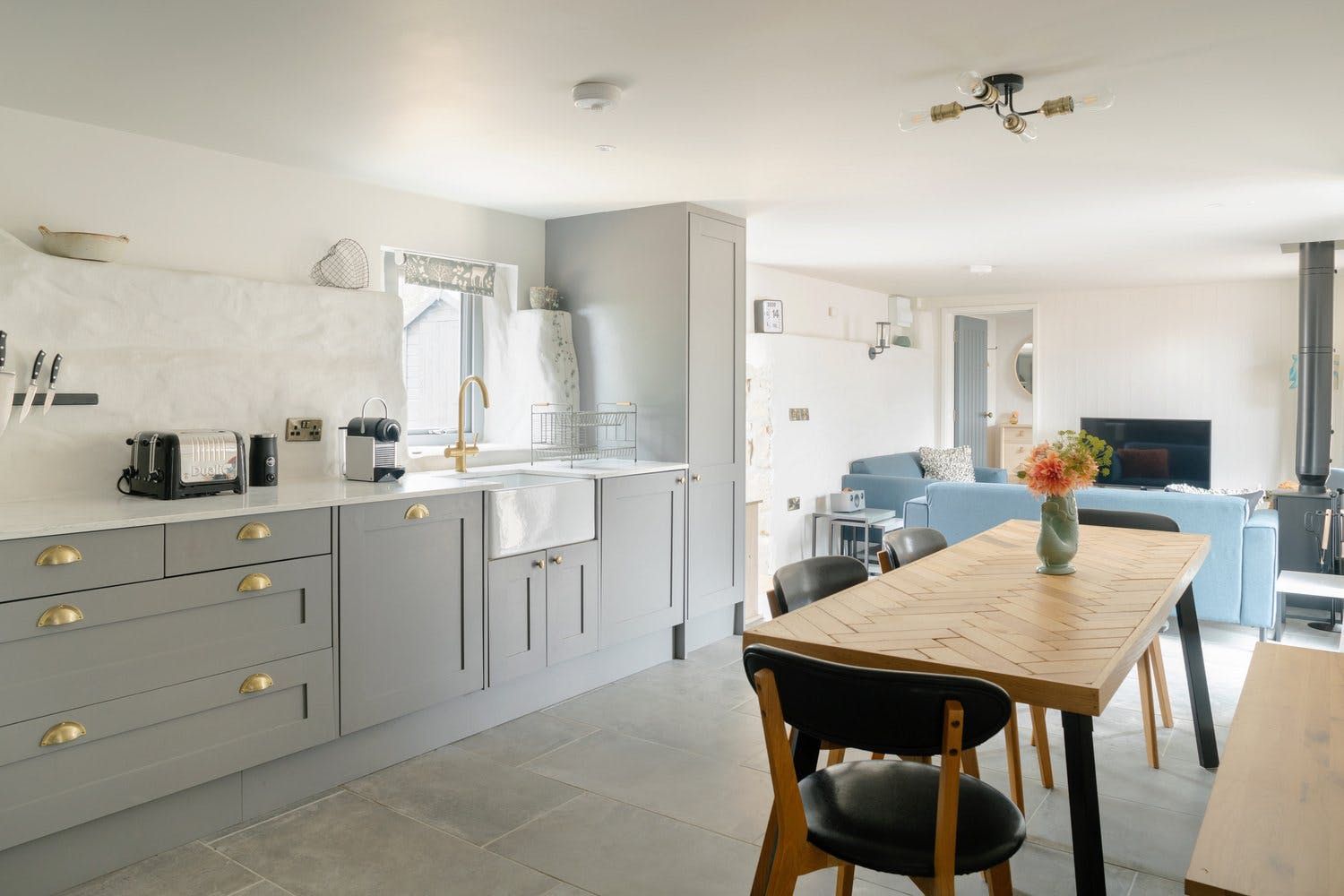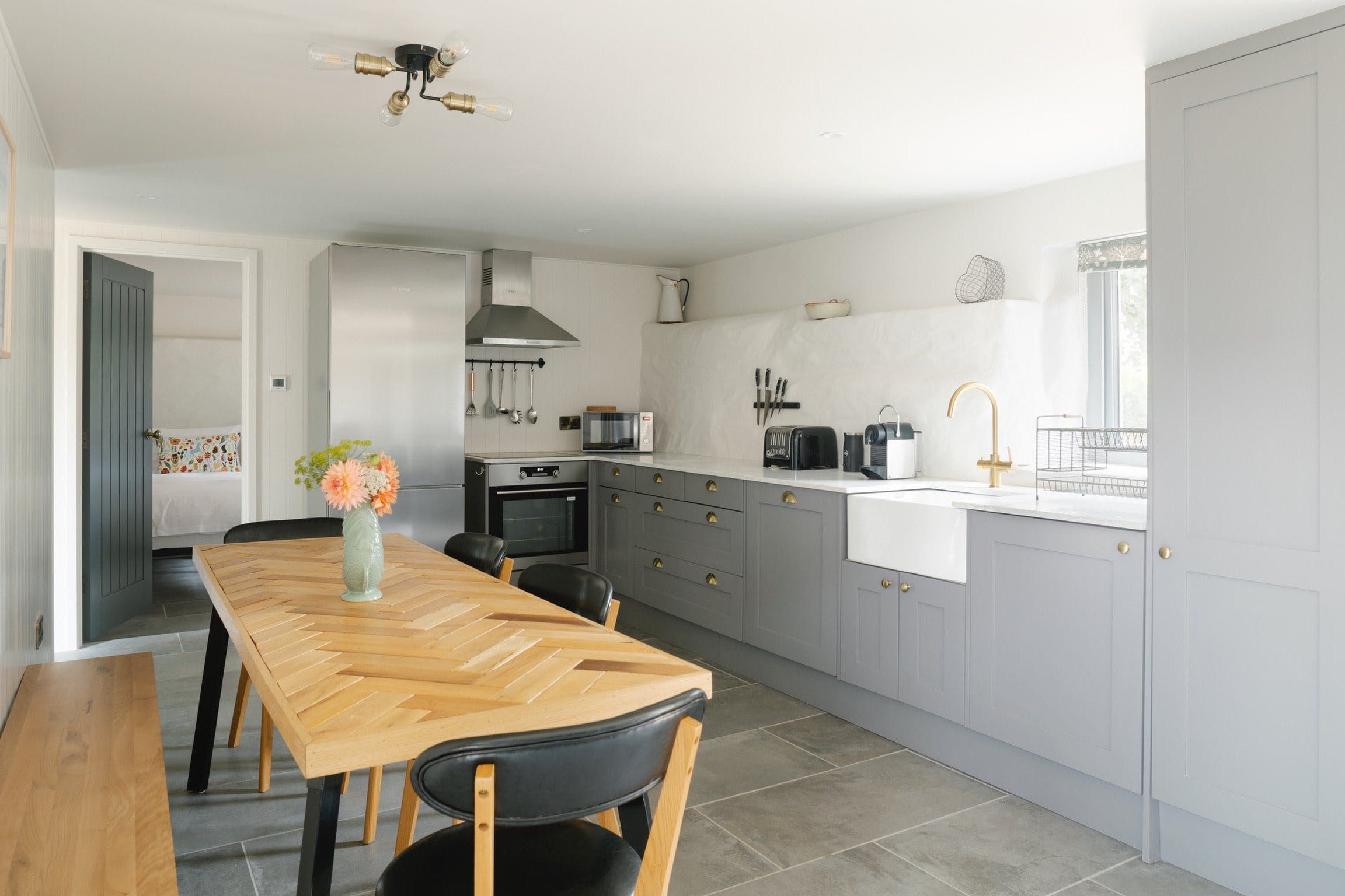 Set in an old stable, the pastoral facade of this home delights from the offset. Inside, renovated interiors ensure comfort and style. We love the open-plan living space, with its fully-equipped country kitchen, large dining table and cosy lounge, complete with a wood-burning stove. Spend mornings huddled here with a cup of tea, slathering salted butter onto fresh bread from the local bakery – delivered daily to your doorstep if you wish. Outside, you'll find the enclosed garden, promising privacy and dressed to the nines with a firepit, barbecue and woodfired hot tub. Spend balmy evenings here, toasting marshmallows at sunset.