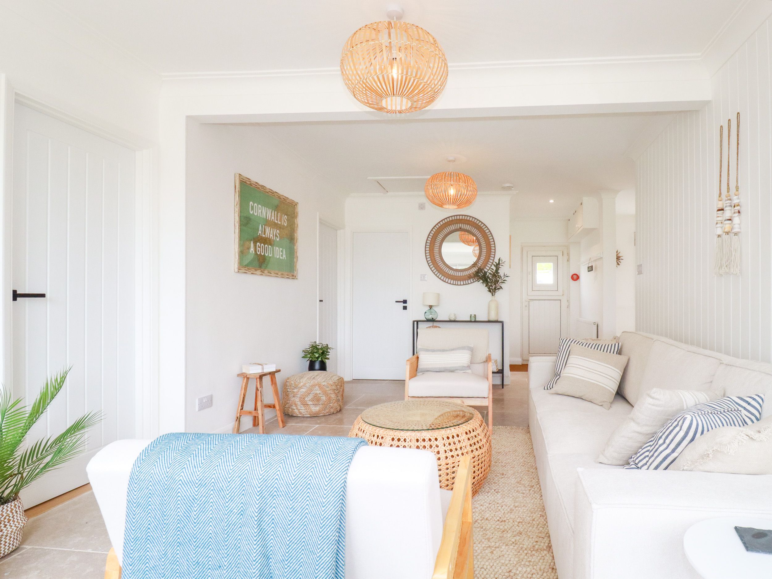 Accomodation Details Foot path directly to beach at bottom of the garden. Single-storey. Three ground-floor bedrooms: 1 x super-king-size, 1 x double, 1 x family room with double and single. Shower room with walk-in shower, basin, towel rail and WC. Shower room with walk-in shower, basin and WC. Open-plan living space with kitchen, dining area and sitting area. Utility