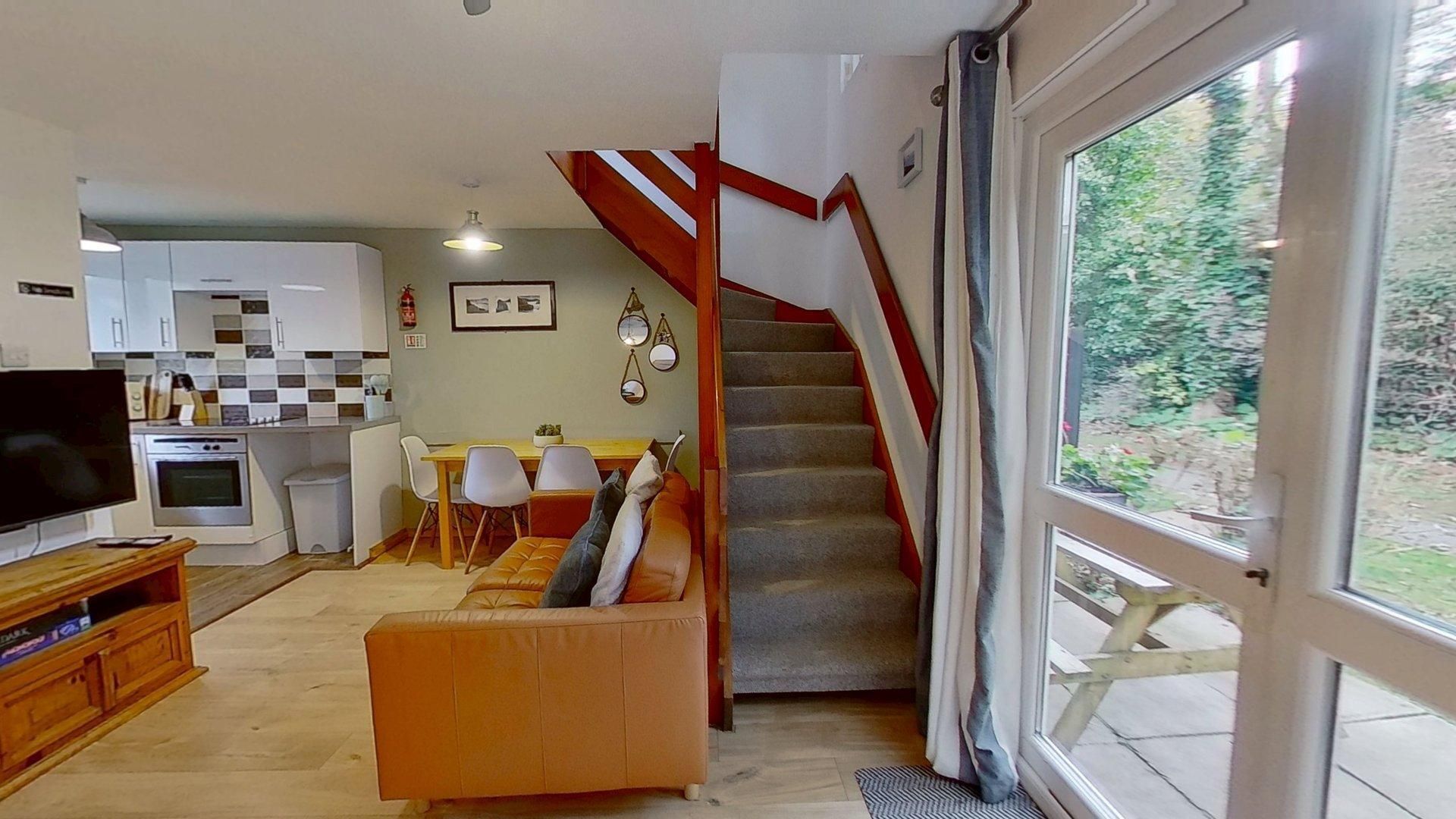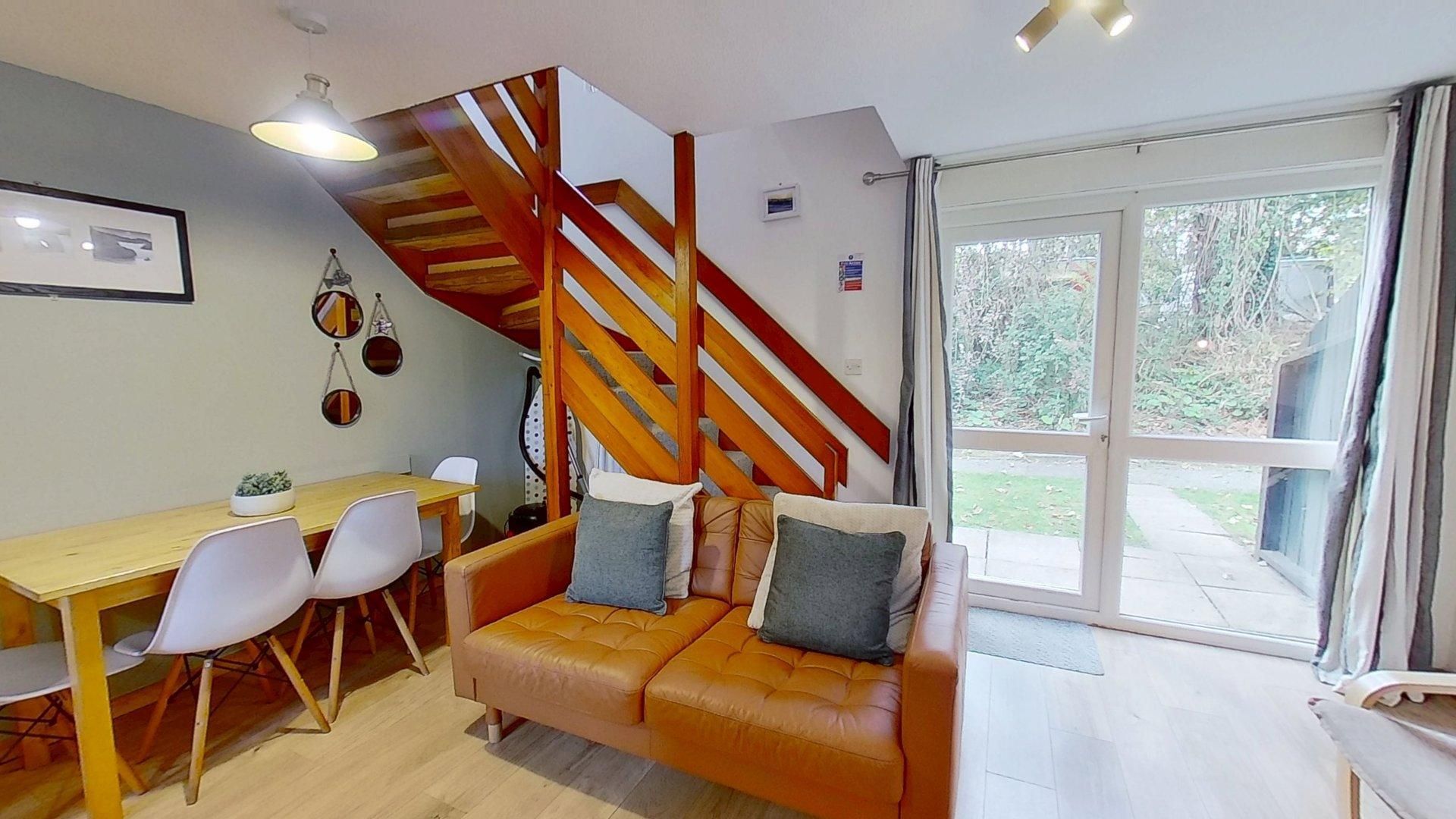 Outside: There is a patio with a a picnic bench. Free parking can be found in nearby on site car parks.