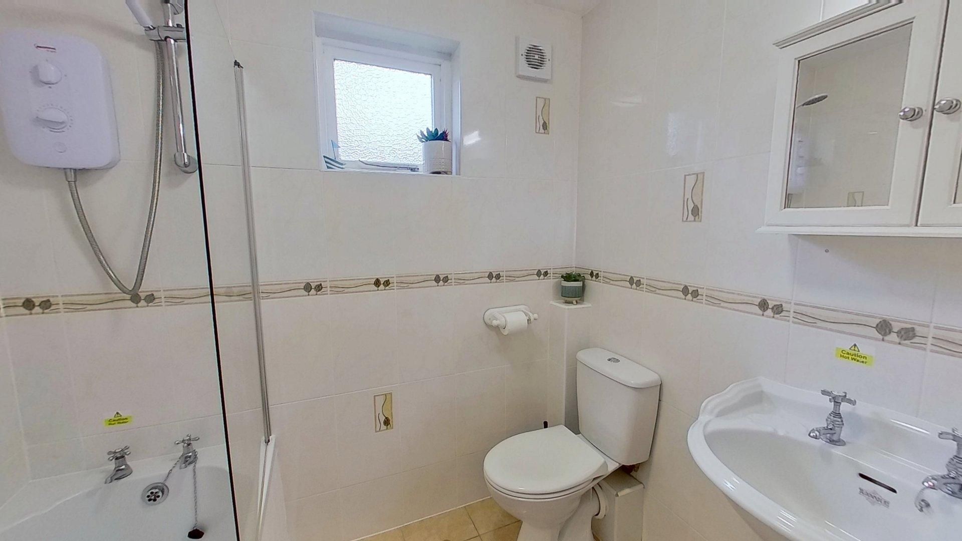 Bathroom: With a bath which has a shower over, wash basin and WC.