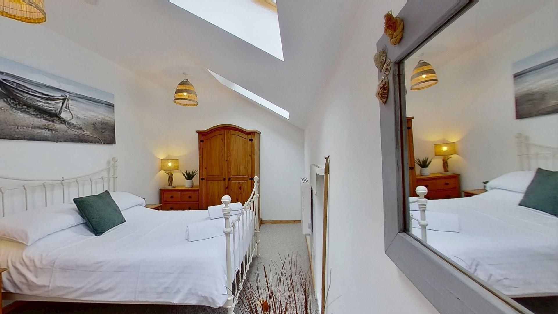 Bedroom One: A larger than average bedroom with a double bed, bedside tables, lamps, chest of drawers, wardrobe and easy chair. There is also room for a cot in this room.