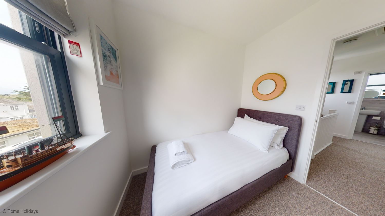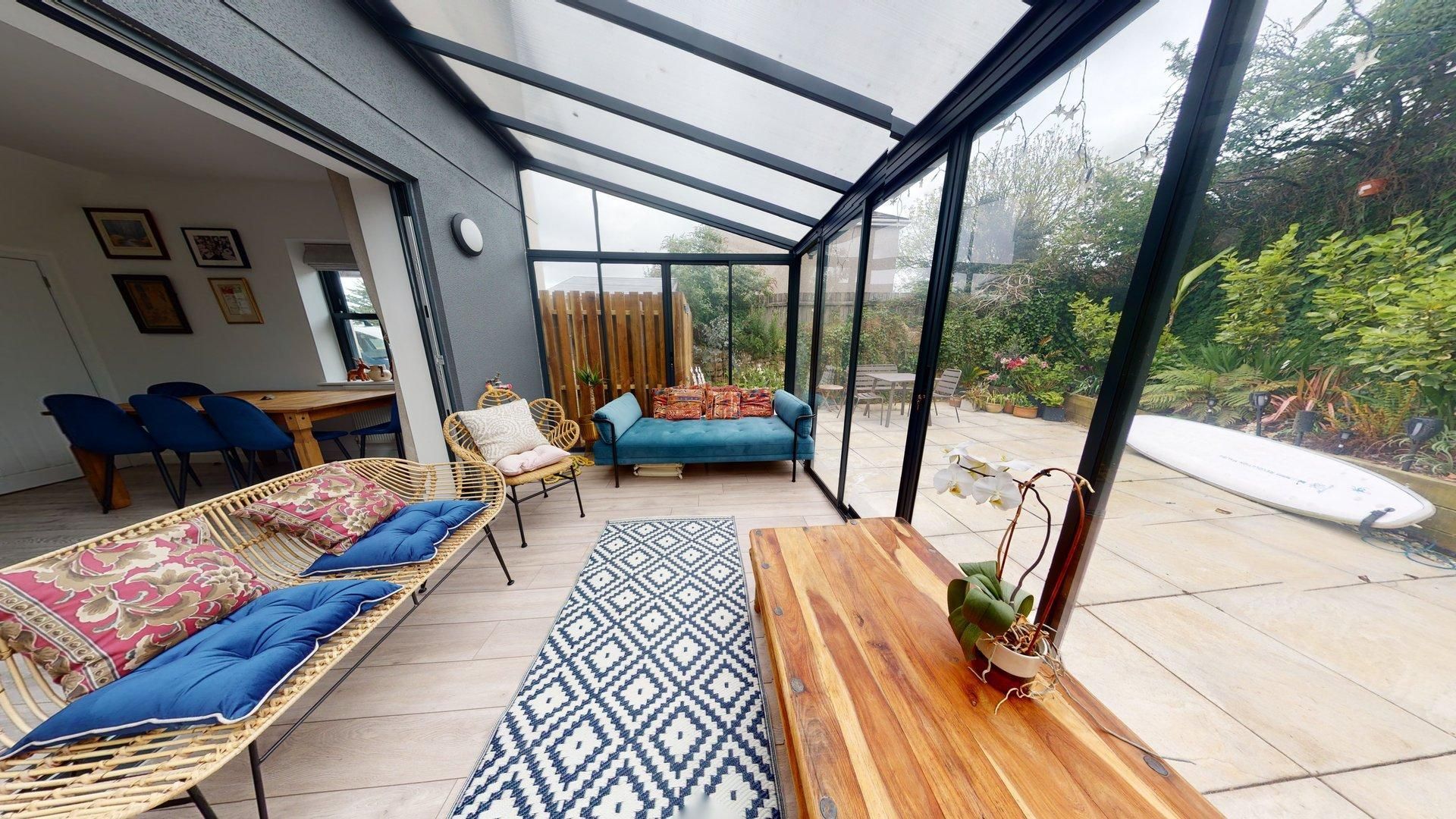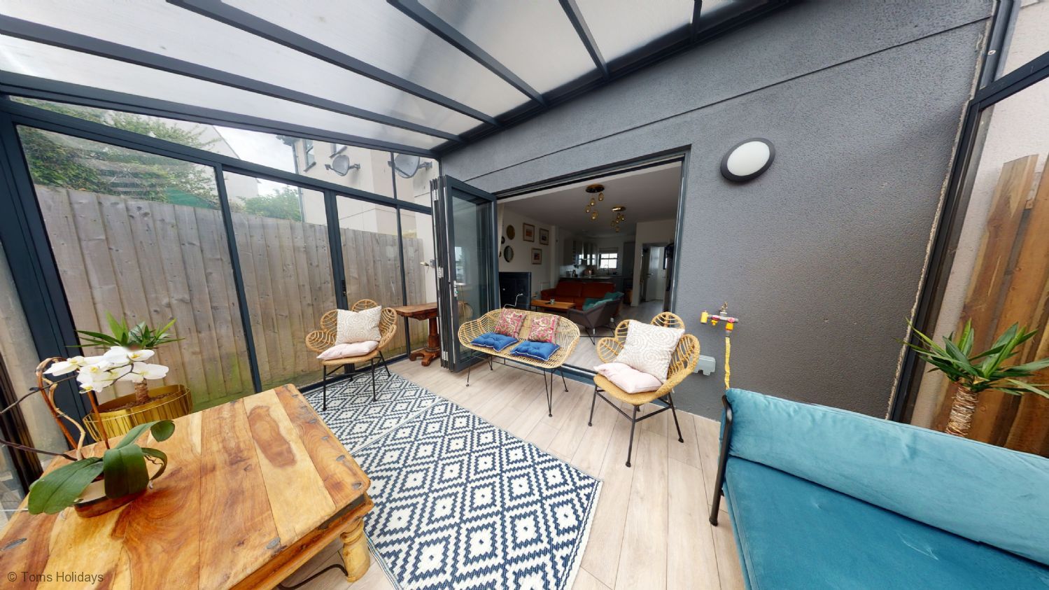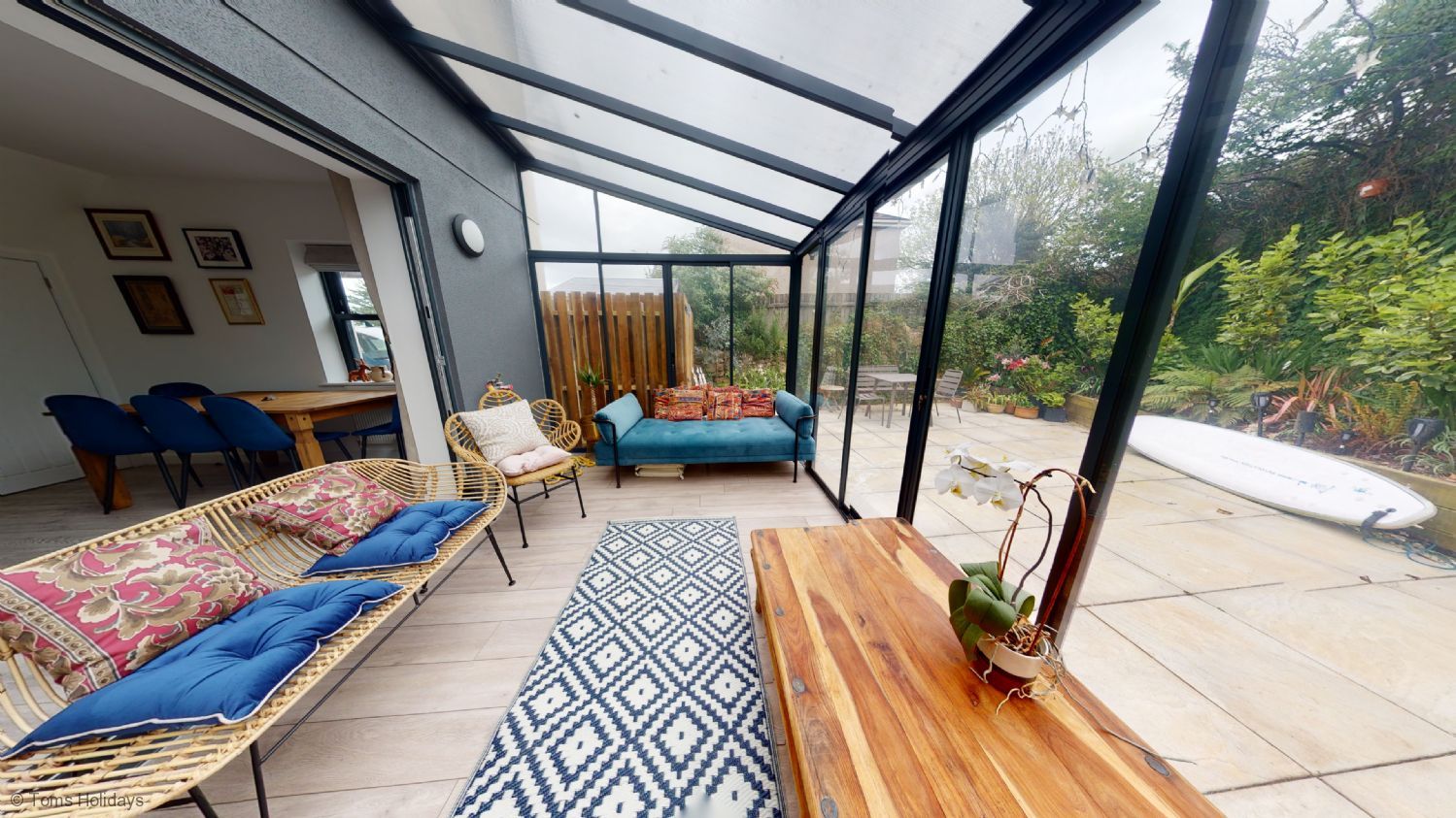 5 Queensway Gardens is a beautiful holiday bolthole. Modern, comfortable, spacious and thoughtfully designed. With three bedrooms (1 double en-suite, 1 double and 1 single) 5 Queensways gardens offers accommodation for up to 5 guests. Enjoy outside seating in a lush garden, a sunroom with luxe finishes and space to relax in an open plan living / dining space with a well-equipped kitchen & breakfast bar and downstairs w.c. to the front of the property and a dedicated parking space directly outside the front door. Perfect for families who are looking for the convenience of modern living, in a location which is perfect for exploring West Cornwall. Coming home to Queensway Gardens at the end of a day’s sightseeing and adventuring will invite you to fully relax. Enjoy slow evening meals and the last of the evening light from the garden and sunroom or cosy up in the lounge with a good book or movie. This home from home is conveniently located in Hayle, with easy access to Copperhouse and its cafe’s pubs and shops. Just a short drive to the beaches of Harvey’s & Mexico Towans and around 15 minutes from St. Ives and Penzance.