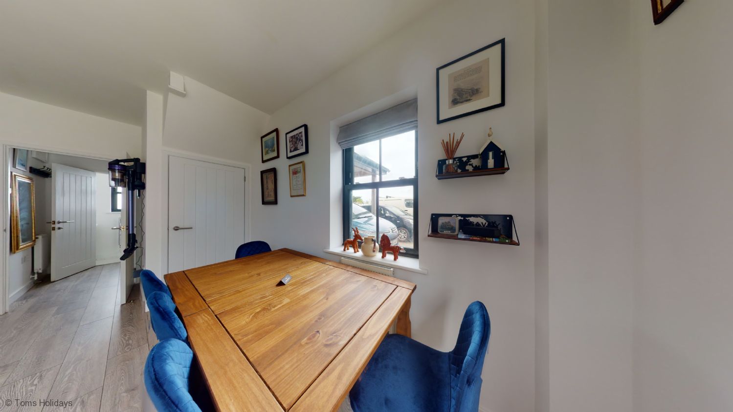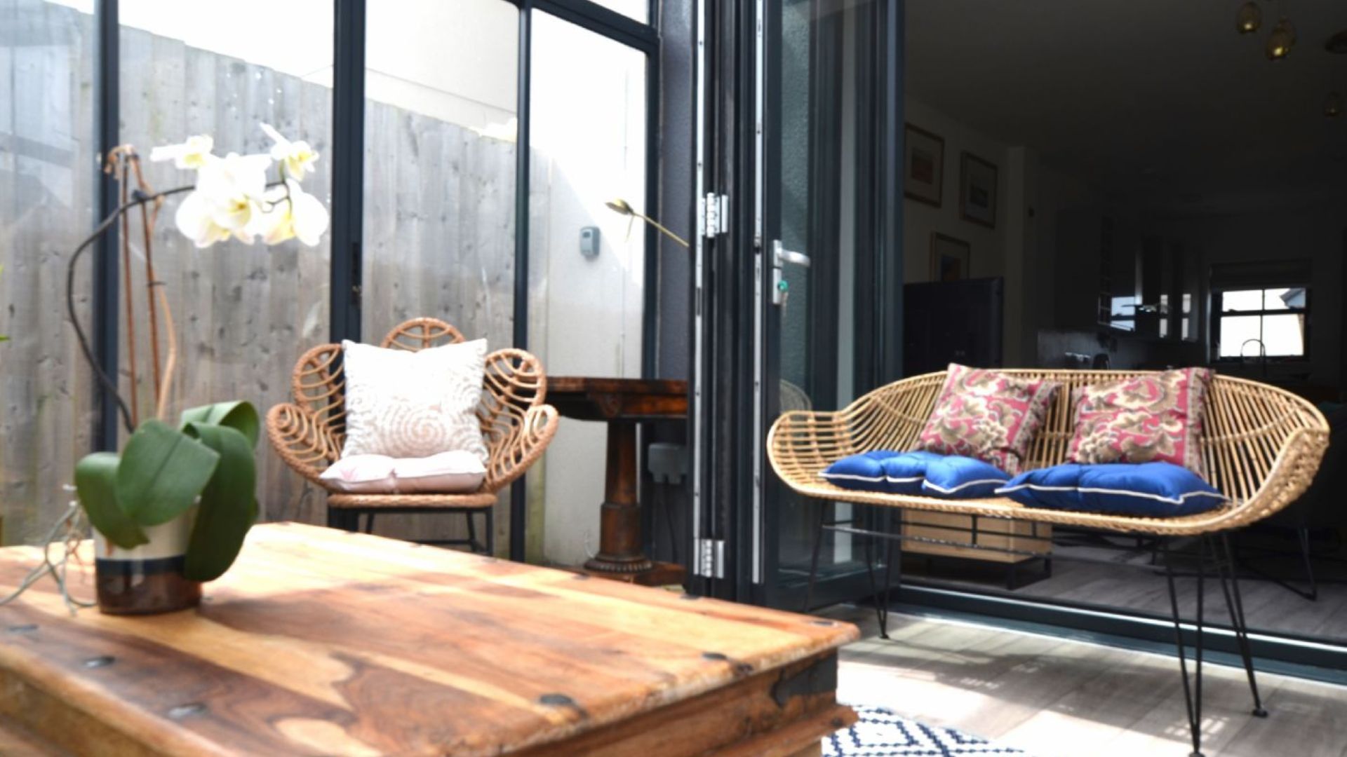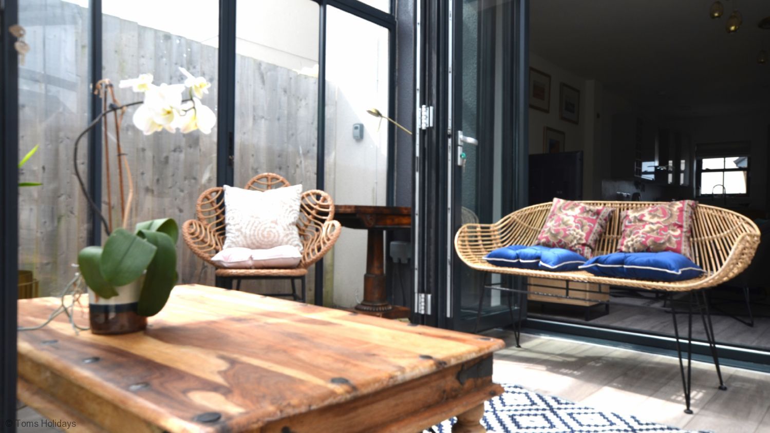 Bedroom 1 - Double bed, en-suite bathroom, chest of drawers and hanging rail Bedroom 2 - Double bed, chest of drawers and hanging rail Bedroom 3 - Single bed, table with drawer, hanging rail Bathroom - Bath with shower over, sink & w.c. Downstairs w.c. - w.c., sink & heated towel rail Living / Dining Space - Dining table with 5 chairs, large sofa, comfy chairs. Kitchen / Breakfast bar - Breakfast bar with 3 stools, well equipped kitchen with oven, hob, microwave, fridge / freezer. Sunroom - chaise longue and wicker seating Garden - table and chairs