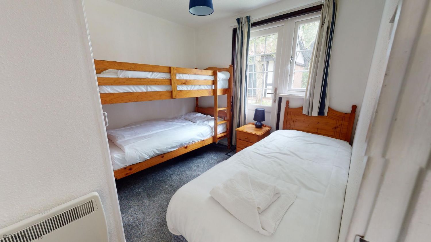 Ground Floor Living/Dining Room - Large open plan room with sofas, TV/DVD, dining table and chairs and double doors which open onto a patio with outside dining. Kitchen - Well equipped with fridge plus freezer compartment, electric oven and hob, plus crockery and utensils. Bedroom 1 - With bunk beds and a separate single bed. Door to rear of property. Bathroom - With a shower over the bath, wash basin and WC.