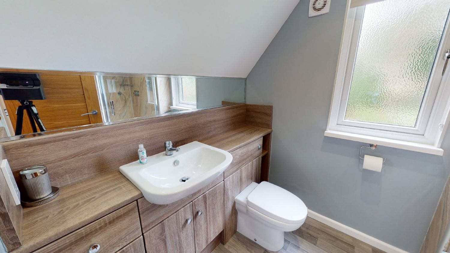 Upstairs shower room - with sink, shower cubicle and toilet. Double bedroom - Double bed, bedside tables. First Twin bedroom - Side-by-side (European style) twin beds. Second Twin bedroom - Two single beds with bedside table.