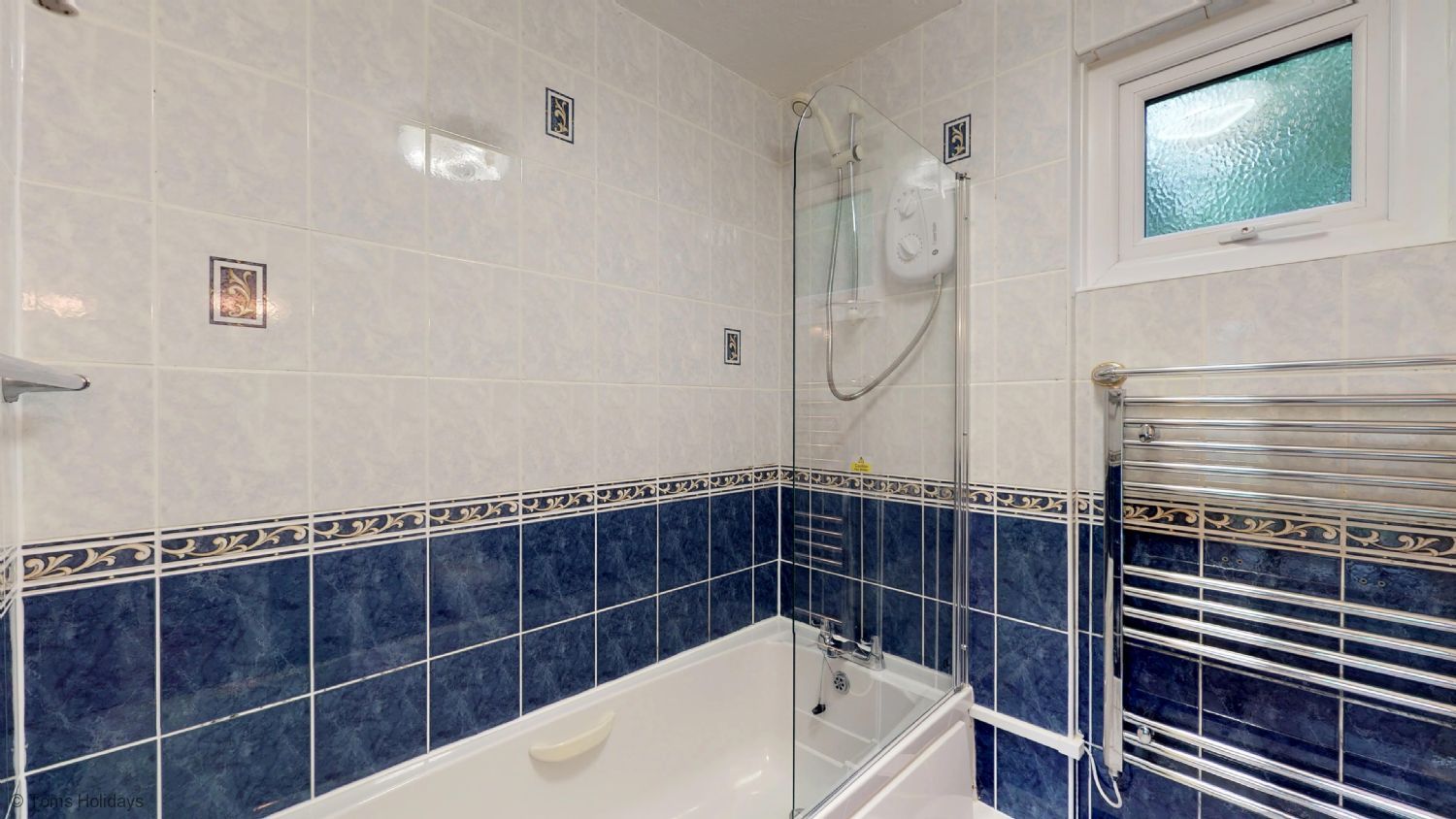 Downstairs Bathroom - with bath, shower over, basin, w.c., heated towel rail Kitchen - well equipped with oven, hob, microwave, fridge / freezer Lounge / Diner - two seater sofa, tub chair, TV/DVD, Dining table & six chairs. Upstairs Bedroom 1 - Double bedroom features a hanging space, chest of drawers and bedside tables Bedroom 2 - Twin bedroom with two single beds and hanging space, chest of drawers and bedside table Bedroom 3 - Single bedroom, hanging space and bedside table.