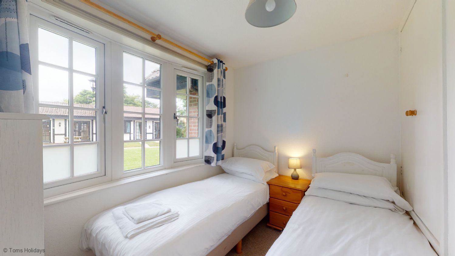 With two bedrooms (one double and one twin room), well equipped kitchen, open plan living/dining space and bathroom, 28 Tudor court offers holiday accommodation for up to four guests.