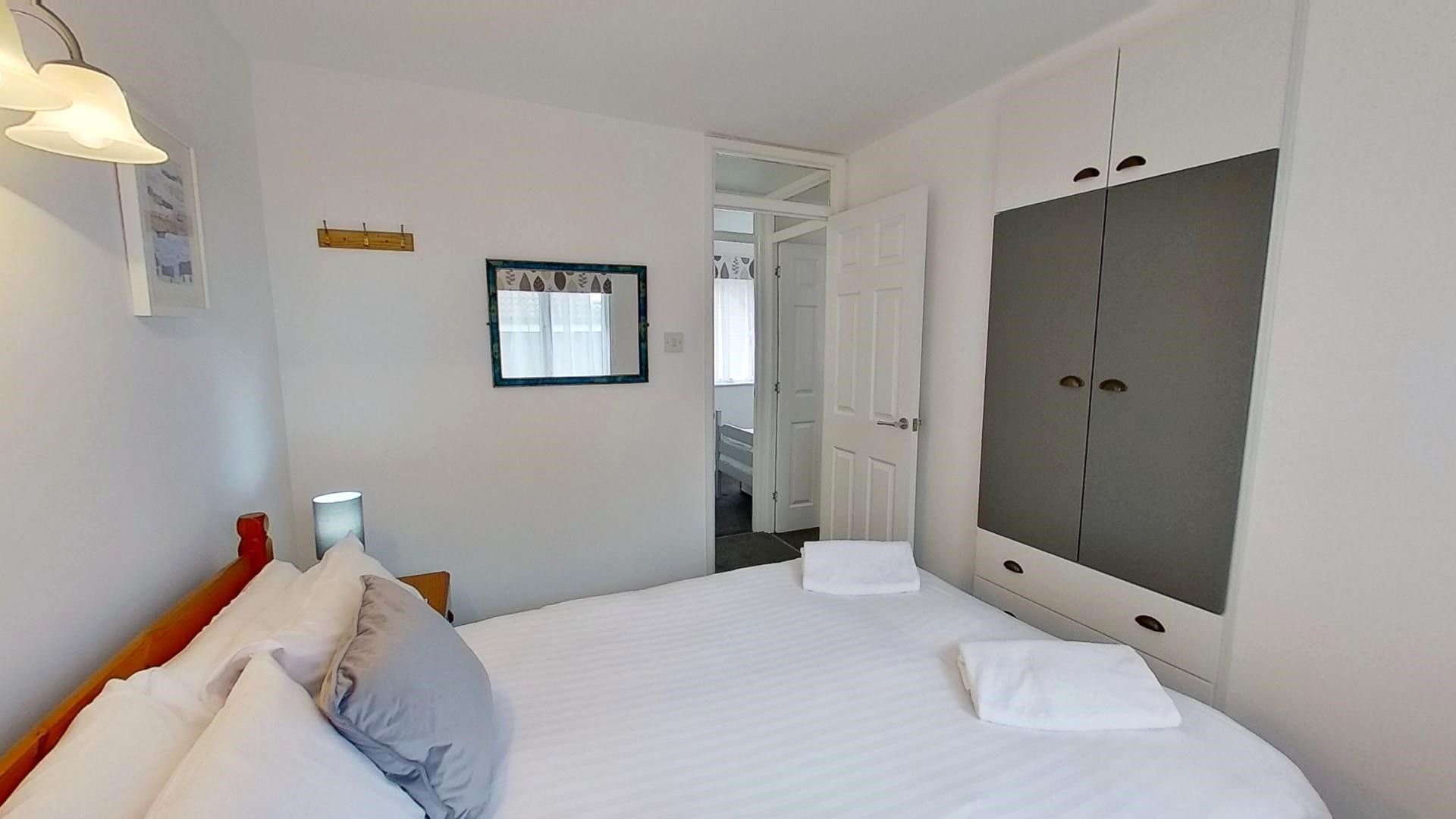 First Floor: Bedroom One: - With a double bed, bedside tables, lamps and a fitted wardrobe with drawers. Bedroom Two: - There are two single beds, bedside tables and a fitted wardrobe with drawers. Bedroom Three: - With a single bed, bedside table, lamp and a fitted wardrobe with drawers.
