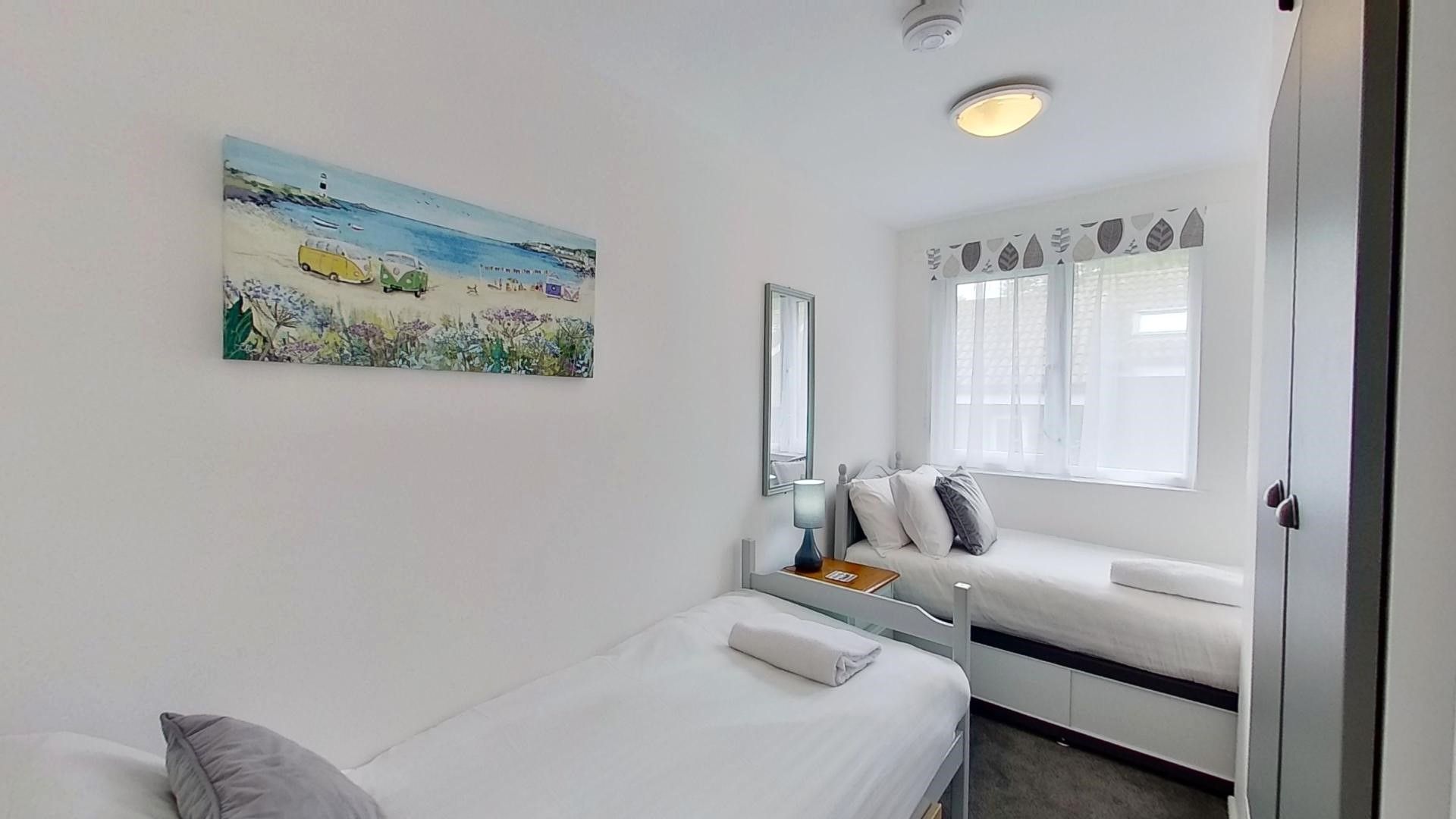 There are three bedrooms (a double room, one twin room and a single bedroom) and 44 Strawberry Hill offers comfortable, well thought out accommodation for up to five guests. Perfect for families to enjoy the stunning local golden, sandy beaches and the sights of St. Ives Bay that are on the doorstep. Mounts Bay and Penzance are also just a short drive away.
