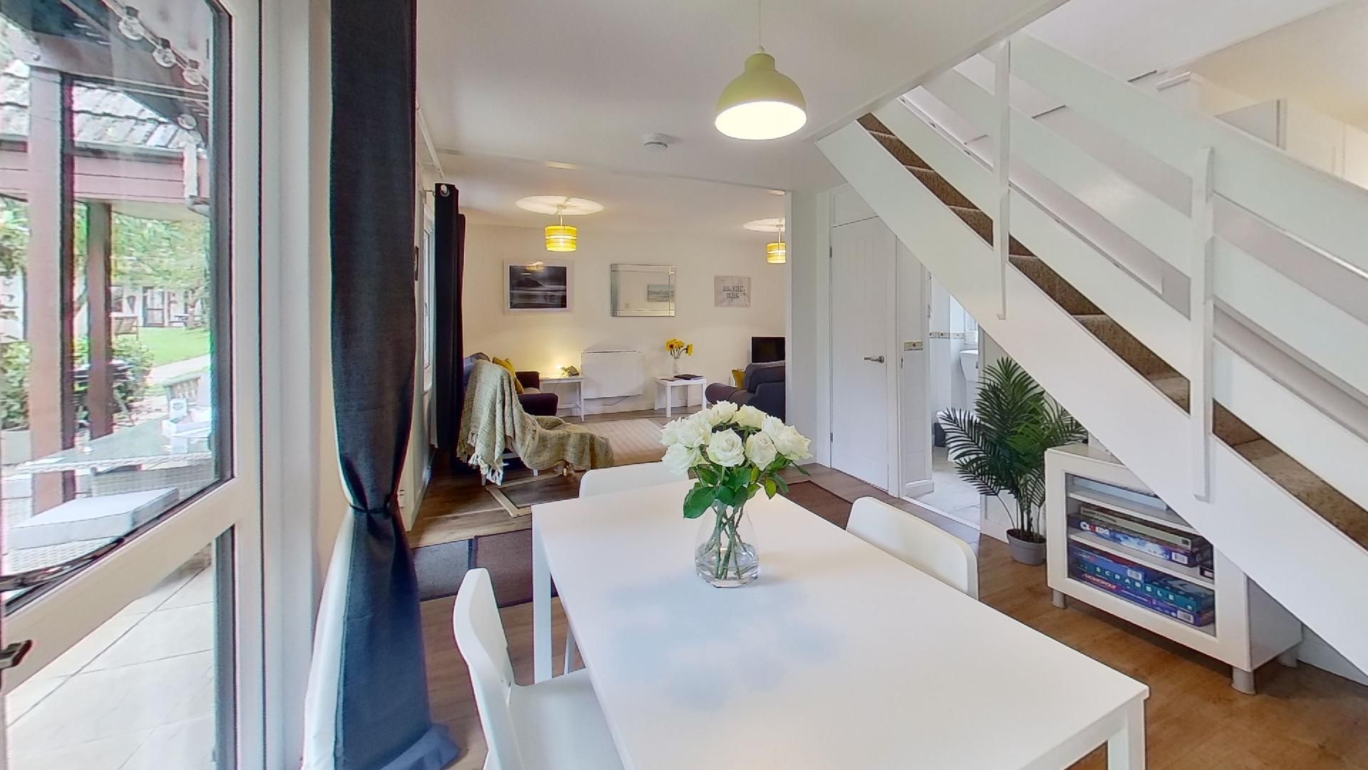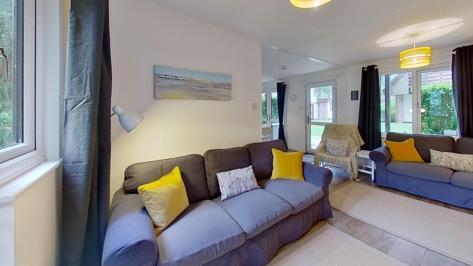 Open plan kitchen/living/dining area. Kitchen - With an electric cooker, microwave, dishwasher and large American style fridge/freezer. Living Area - Bright and light with comfy sofas and chairs and a Smart TV. Dining Area - The dining table comfortably seats up to six guests. Bathroom - With a shower over the bath, wash basin and WC.