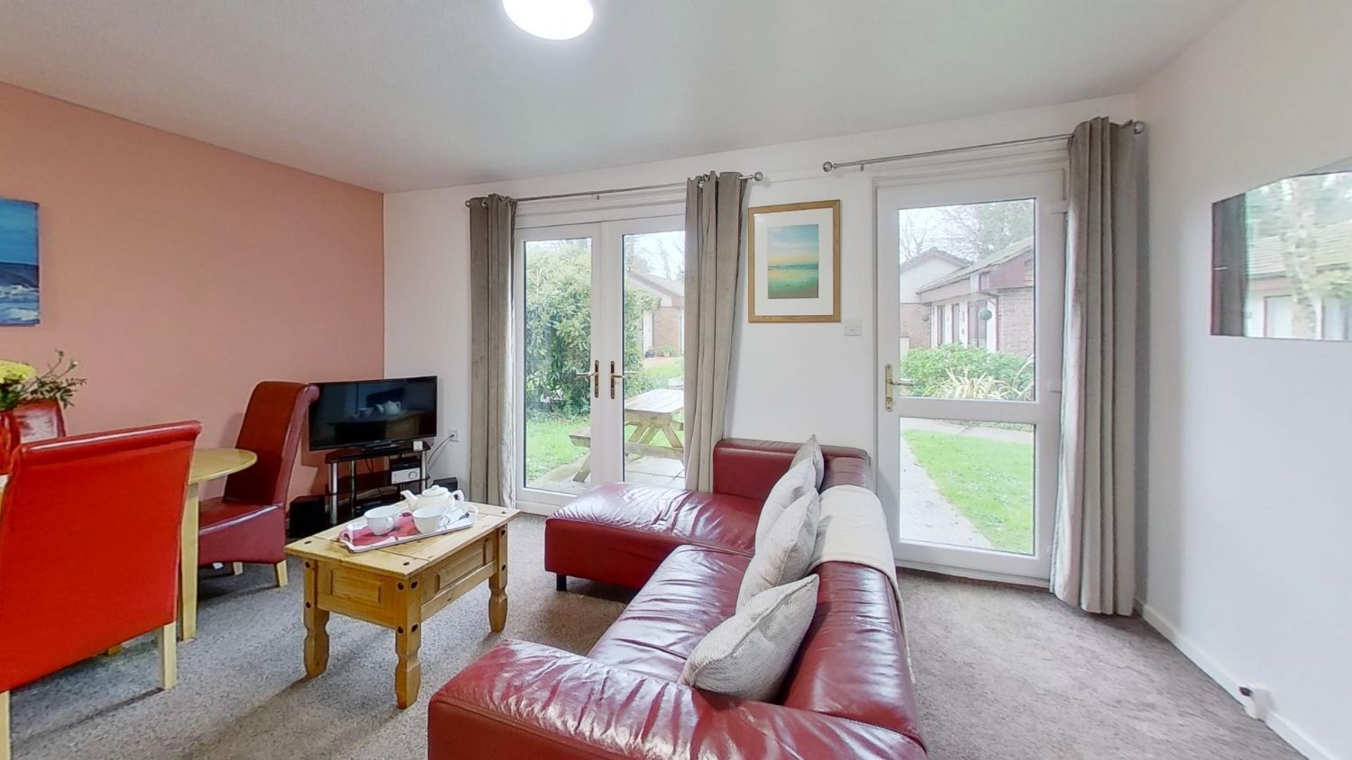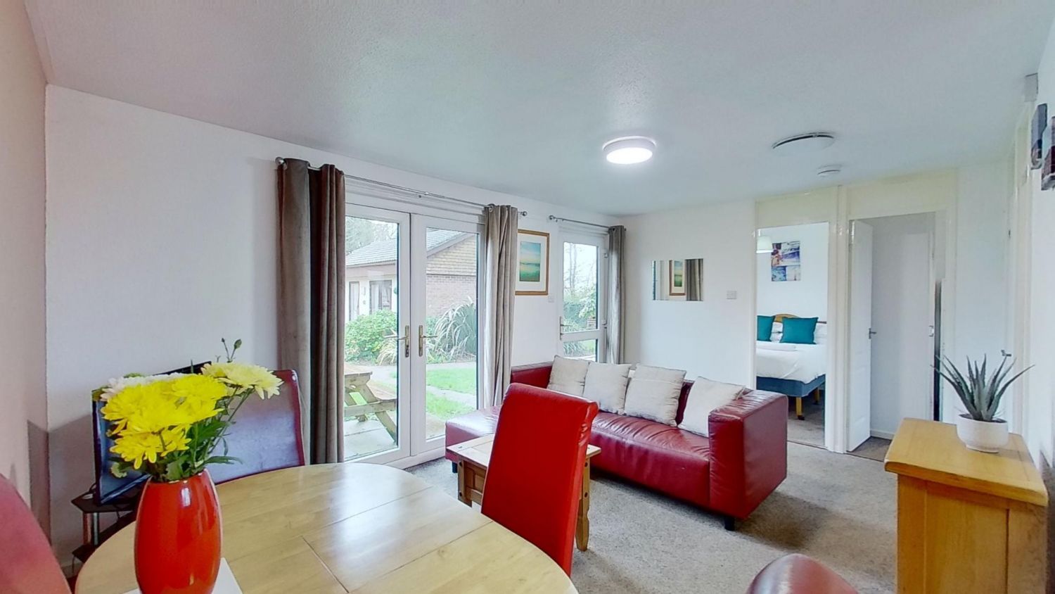Living/Dining/Kitchen Area: An open plan area with a TV, comfy sofa, French doors opening on to the patio, plus a dining table and four chairs. The kitchen offers an electric oven and hob, fridge/freezer and microwave. Bedroom 1: With a small double bed, wardrobe, chest of drawers, bedside unit and lamp, plus views across grassed area. Bedroom 2: This good sized room has bunk beds, wardrobe and chest of drawers. This room has space, should you wish to bring a travel cot. There is also a door to the parking area Shower Room: Offering a newly fitted large shower, wash basin with vanity unit and WC.