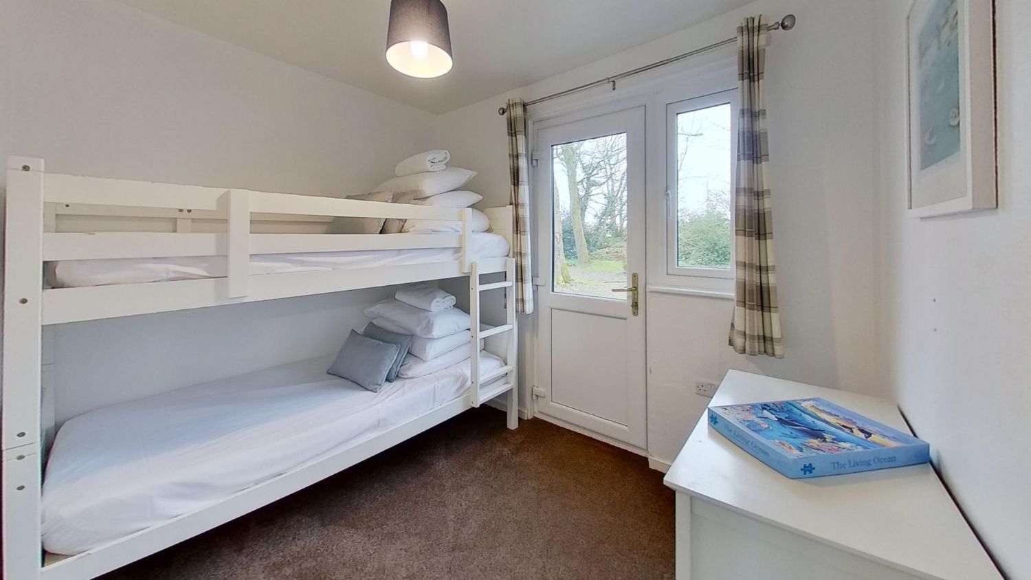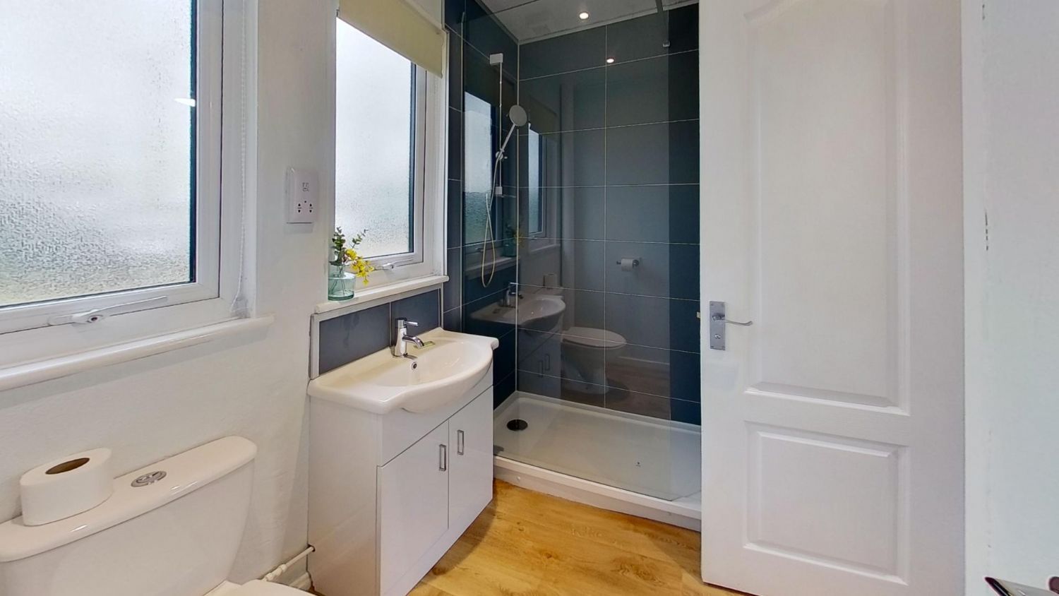 With two bedrooms (one double and bunk bed room), open plan living/dining/kitchen space, plus newly fitted shower room, the bungalow offers level access from the front and rear of the property. Parking is at the back of No. 66, with access through the rear door.