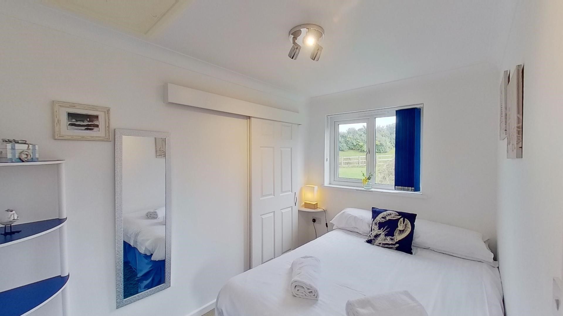 The living space faces the front of the property and enjoys a bright outlook, with comfy seating for downtime after coastal adventures. The kitchen is well equipped for self-catering with fitted cupboards, an electric cooker, under-counter fridge and freezer, microwave and washing machine, and there’s a dining table and chairs for easy mealtimes. French-style outlooks and a secluded seating area to the side invite morning coffees and sunny lunches, while a picnic bench to the front is perfect for alfresco suppers. With beach access close by and Hayle’s wide bay on the doorstep, Carabus keeps holiday living simple from the moment you arrive.